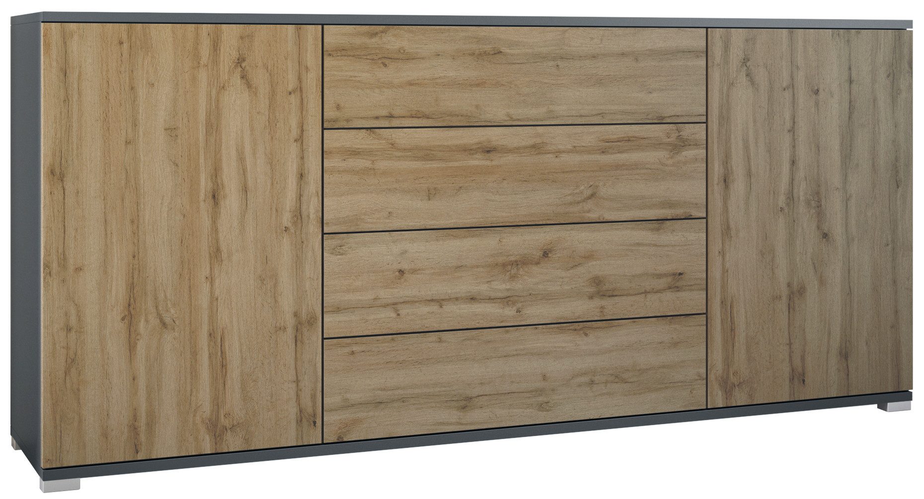 Der Korpus des Sideboards ist in Anthrazit matt gehalten. Wählen Sie die passende Frontfarbe für Ihren Wohnstil: natürliche Holz Optik oder moderne matte Farben.