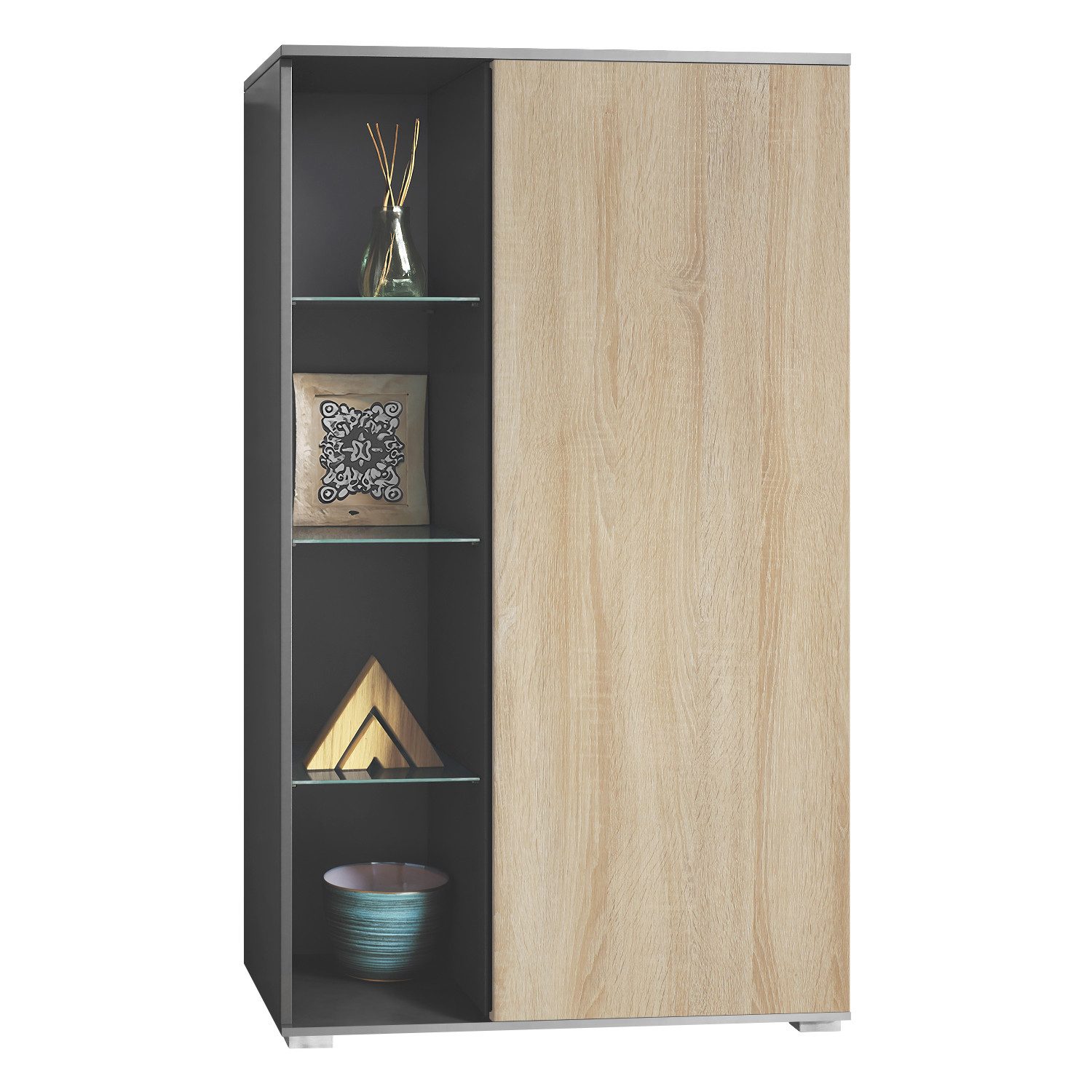 Die Davos Vitrine bietet Qualität und flexible Anpassungsmöglichkeiten in einem eleganten Design. Mit einem robusten Korpus aus hochwertiger Spanplatte und einer strapazierfähigen MDF-Tür ist sie eine ideale Wahl für stilvolle Wohnräume.