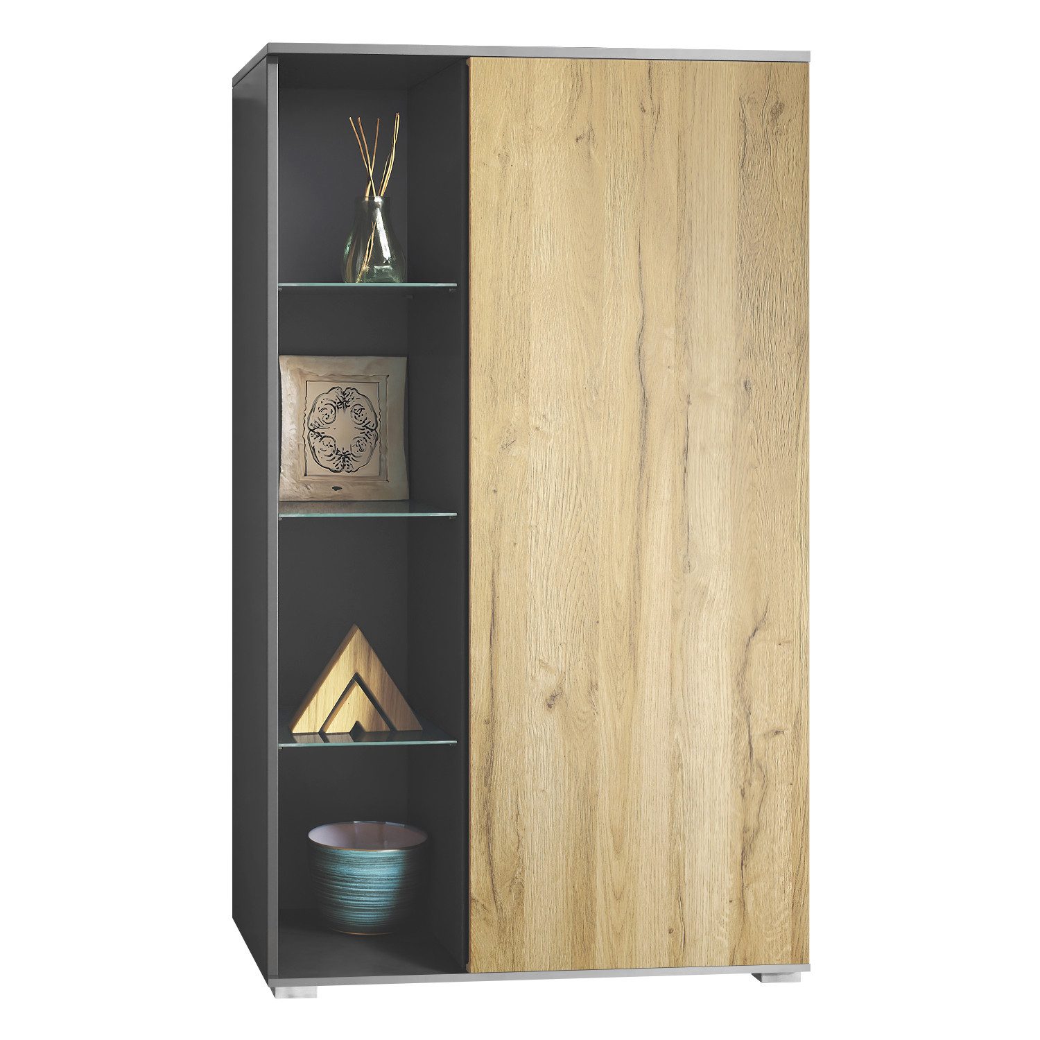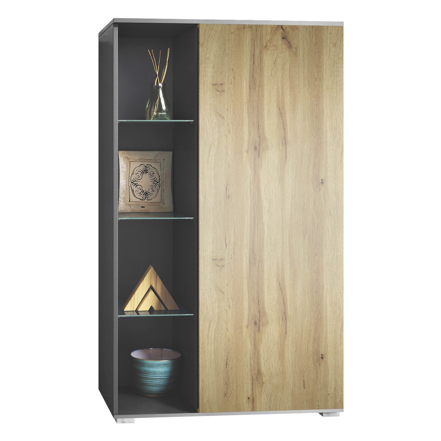 Mit insgesamt vier offenen Fächern, die mit drei robusten Glasböden ausgestattet sind, bietet die Davos Vitrine ausreichend Platz zur Präsentation Ihrer Lieblingsstücke. Hinter der Tür befinden sich weitere vier Fächer, die großzügigen Stauraum für Ihre persönlichen Gegenstände bieten.