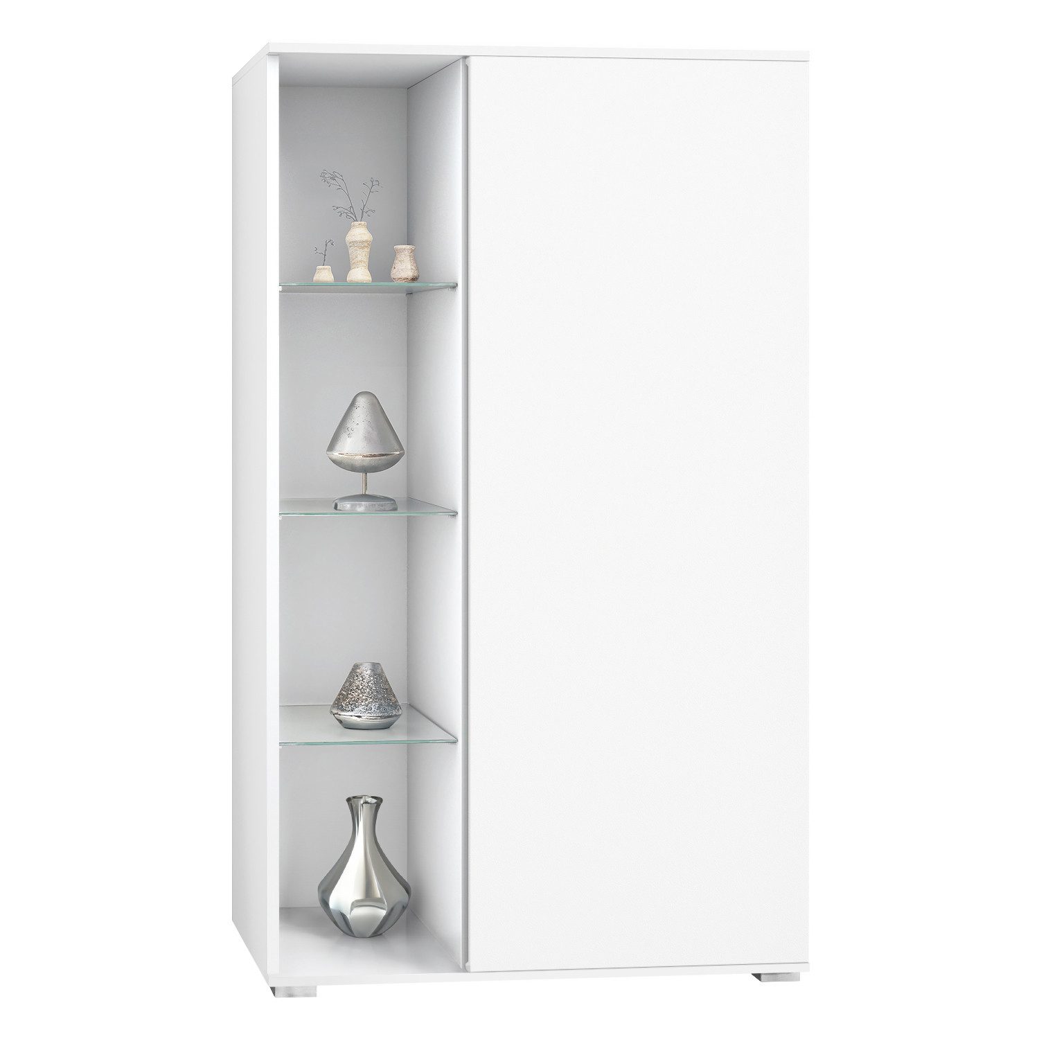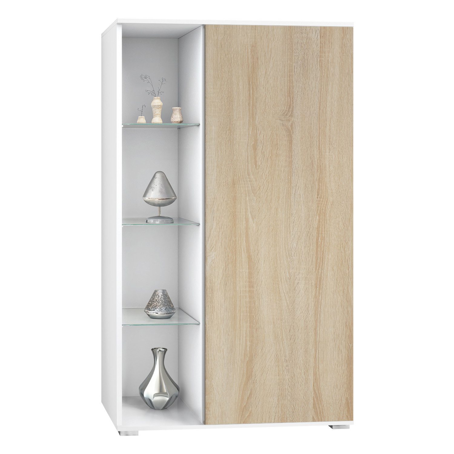 Die Davos Vitrine bietet Qualität und flexible Anpassungsmöglichkeiten in einem eleganten Design. Mit einem robusten Korpus aus hochwertiger Spanplatte und einer strapazierfähigen MDF-Tür ist sie eine ideale Wahl für stilvolle Wohnräume.