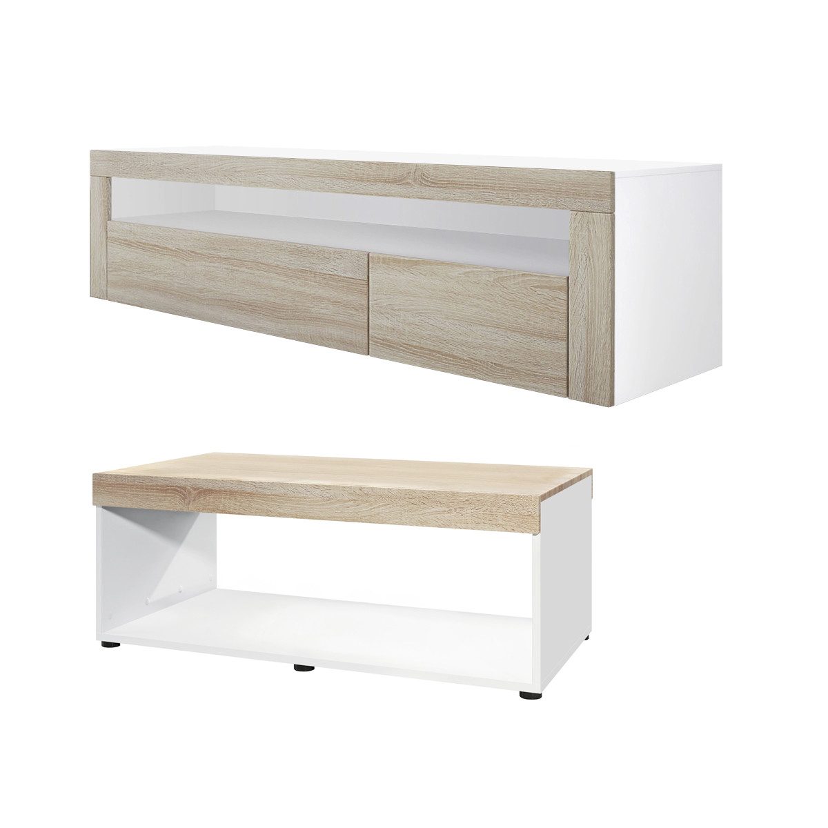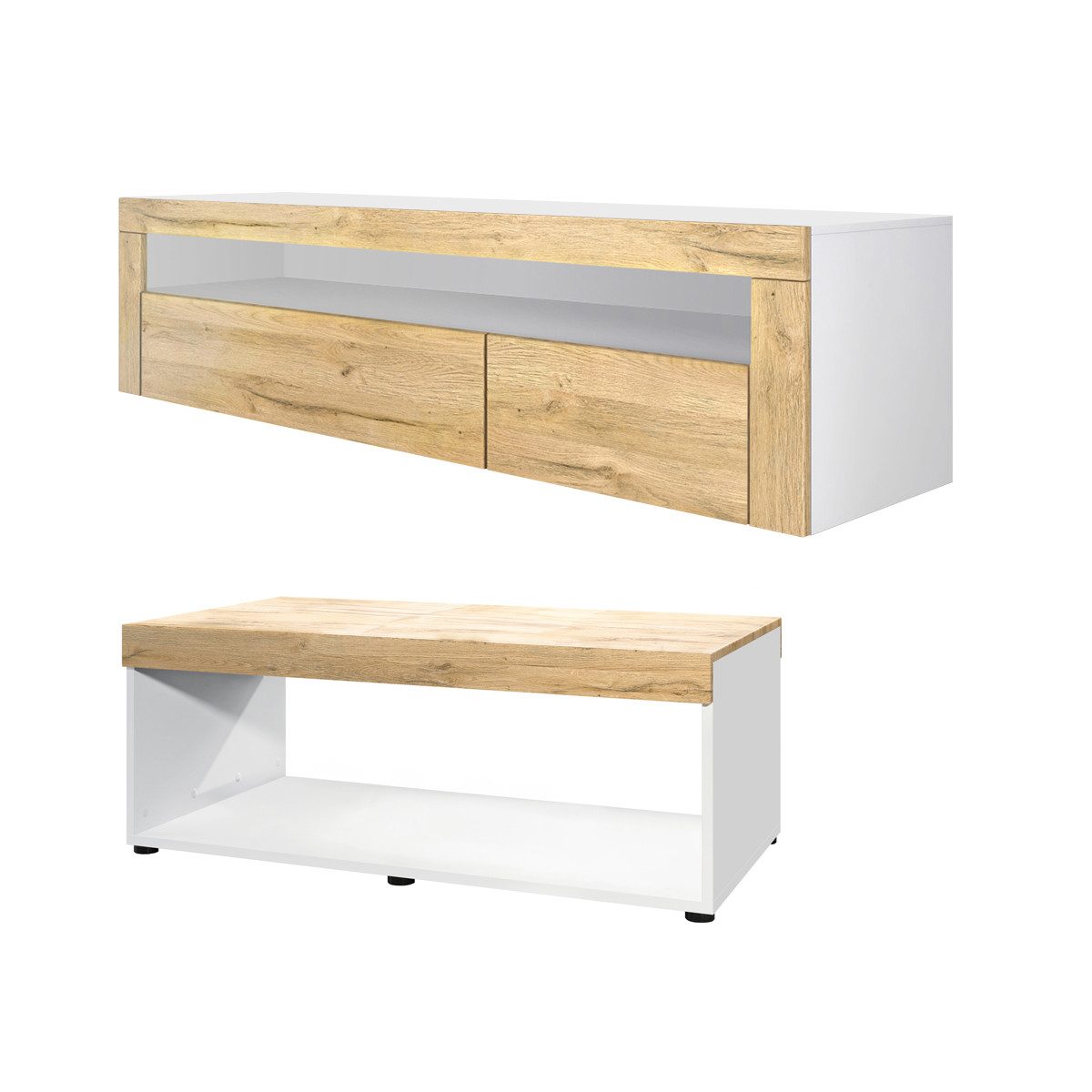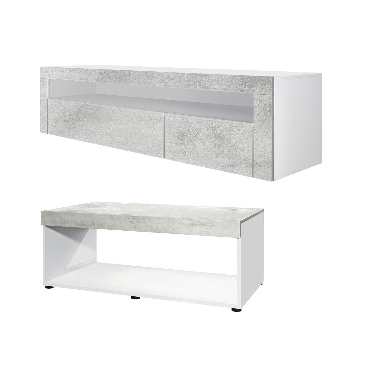 (Wohnzimmer-Set, bestehend aus 1 TV Board und 1 Couchtisch), Weiß matt/Grau Hochglanz