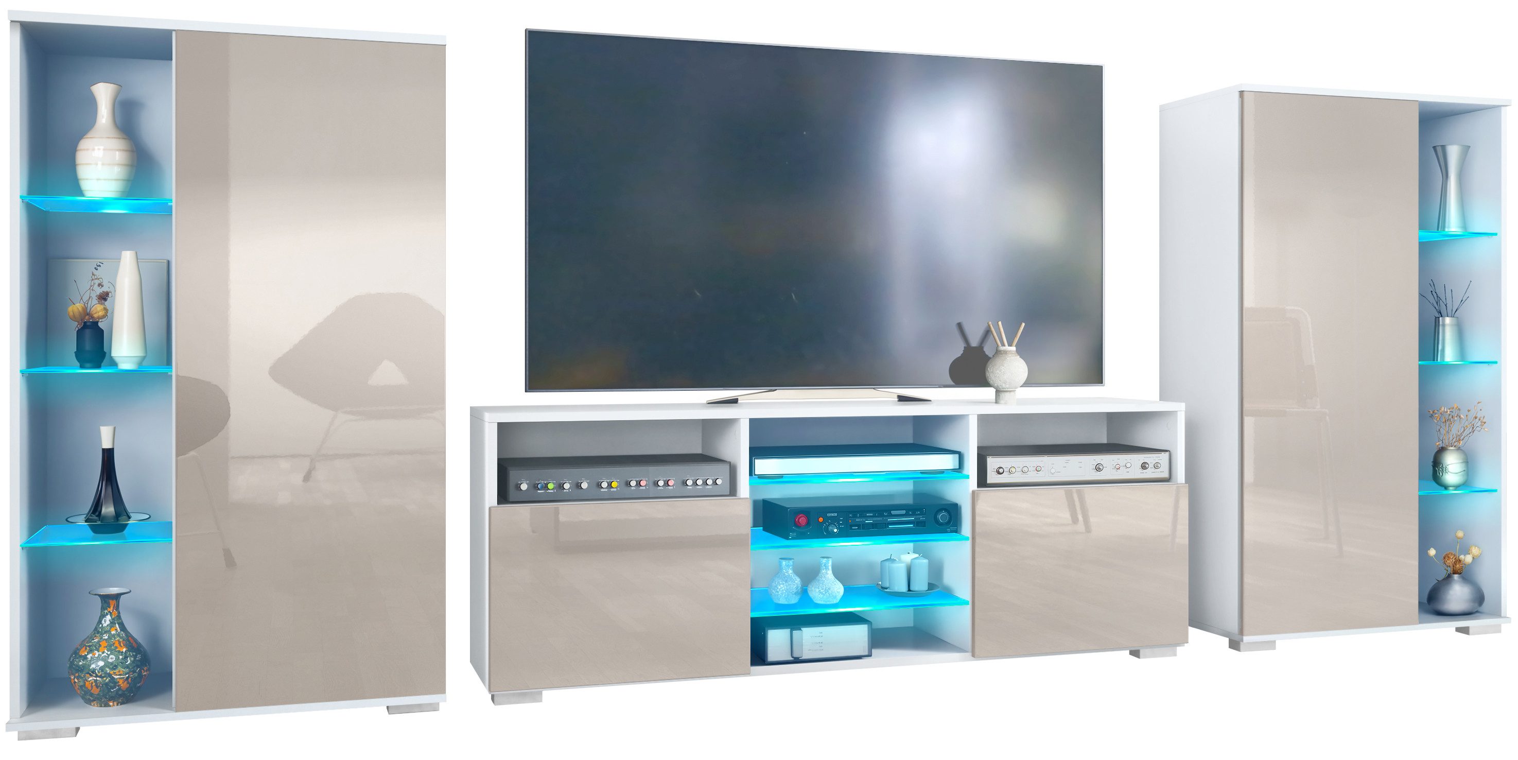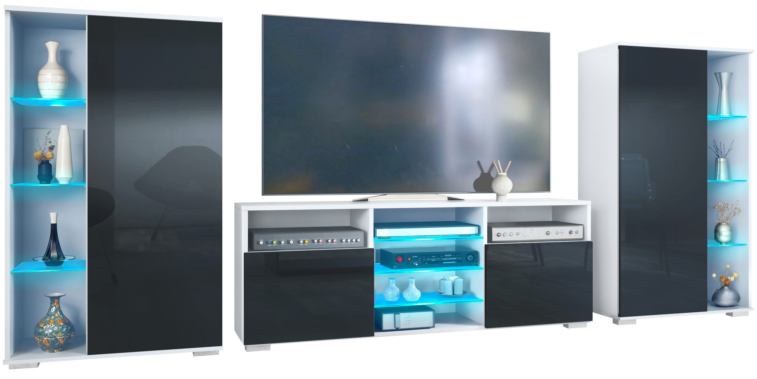 Entdecken Sie die vielseitige und moderne Davos Wohnwand, bestehend aus zwei Vitrinen und einem Lowboard. Diese Wohnzimmermöbel vereinen Qualität, Flexibilität und modernes Design, um Ihren Wohnraum stilvoll zu gestalten.
