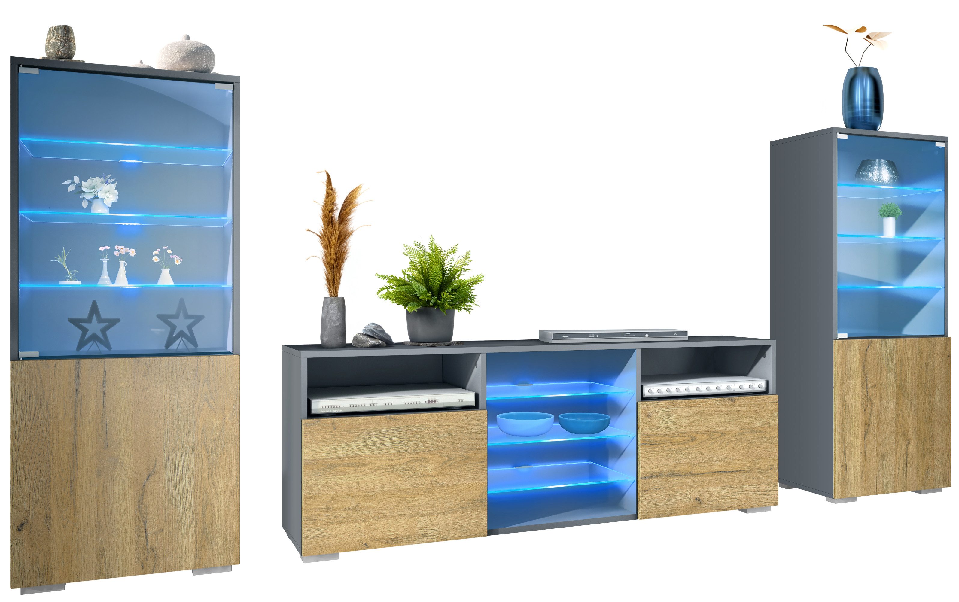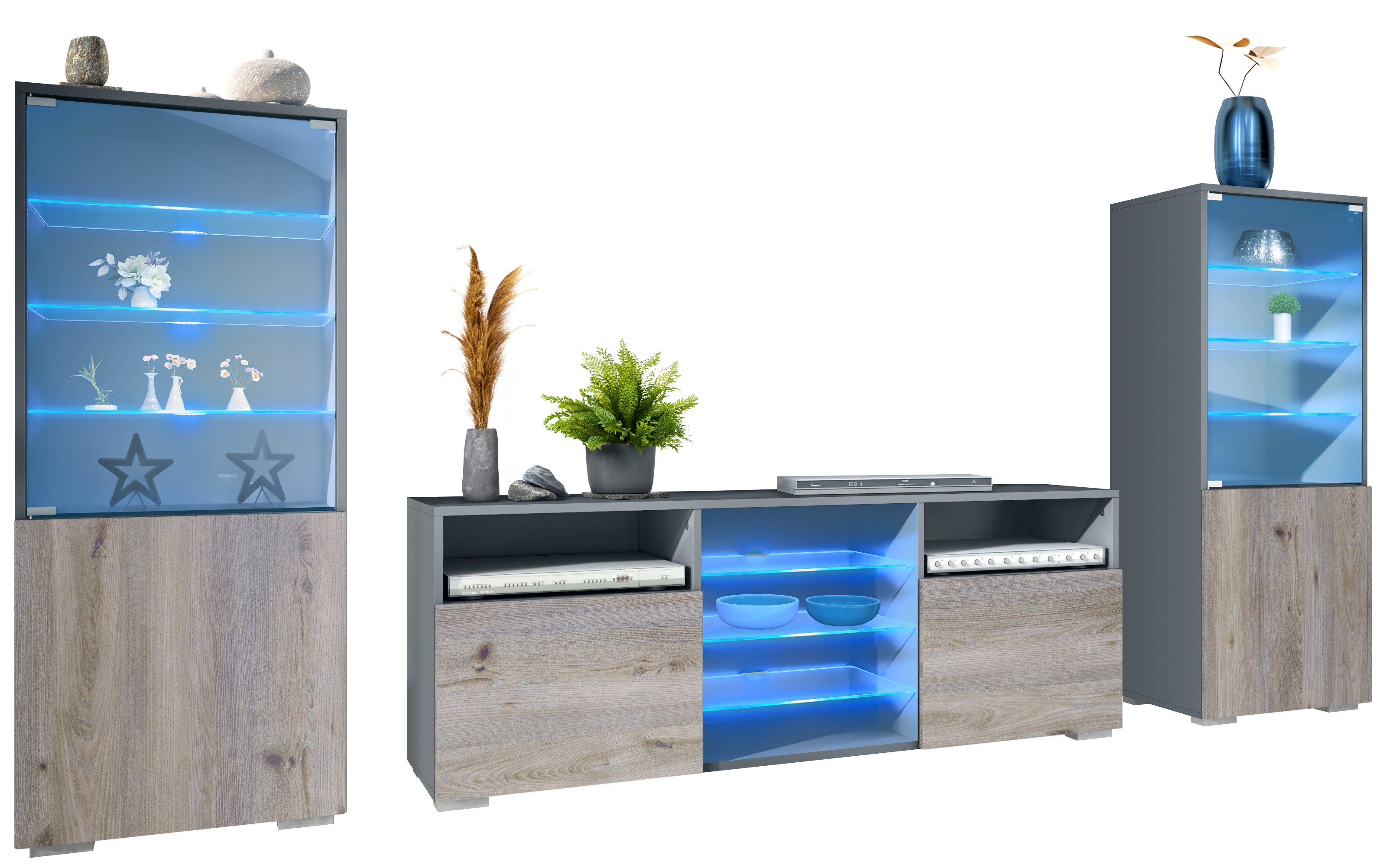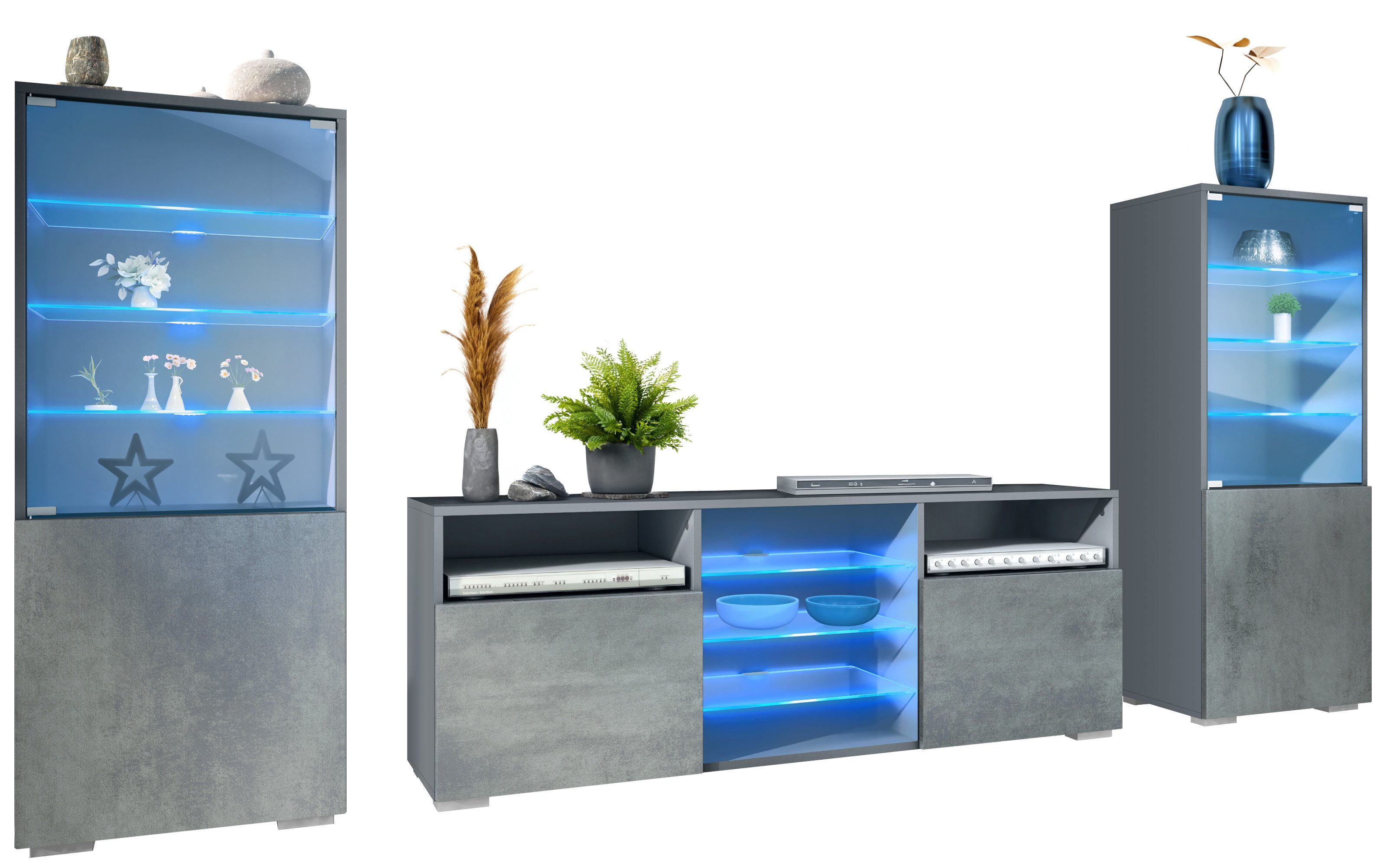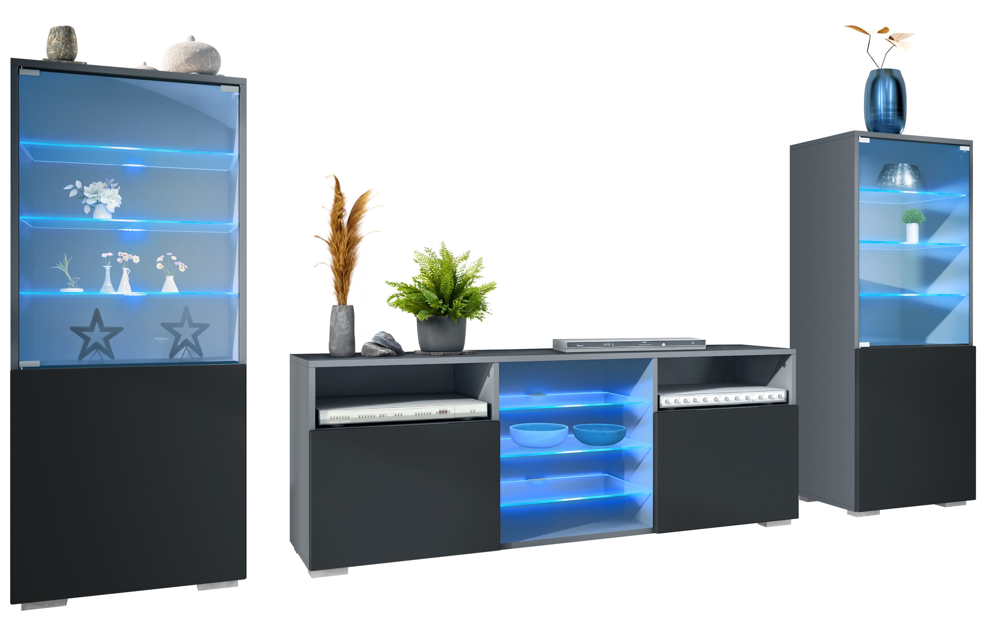 Modellbezeichnung | Wohnwand 3-tlg. Granada Anthrazit LED |