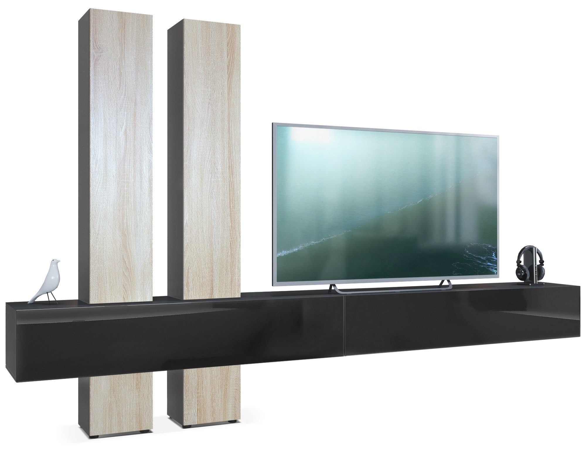 Diese einzigartige Wohnwand bringt nicht nur Stil in Ihr Zuhause, sondern bietet auch reichlich Stauraum für all Ihre Bedürfnisse. Ob als Blickfang im Wohnzimmer oder als praktischer Platz für Ihren Fernseher und Dekor, die Moja Wohnwand überzeugt auf ganzer Linie.