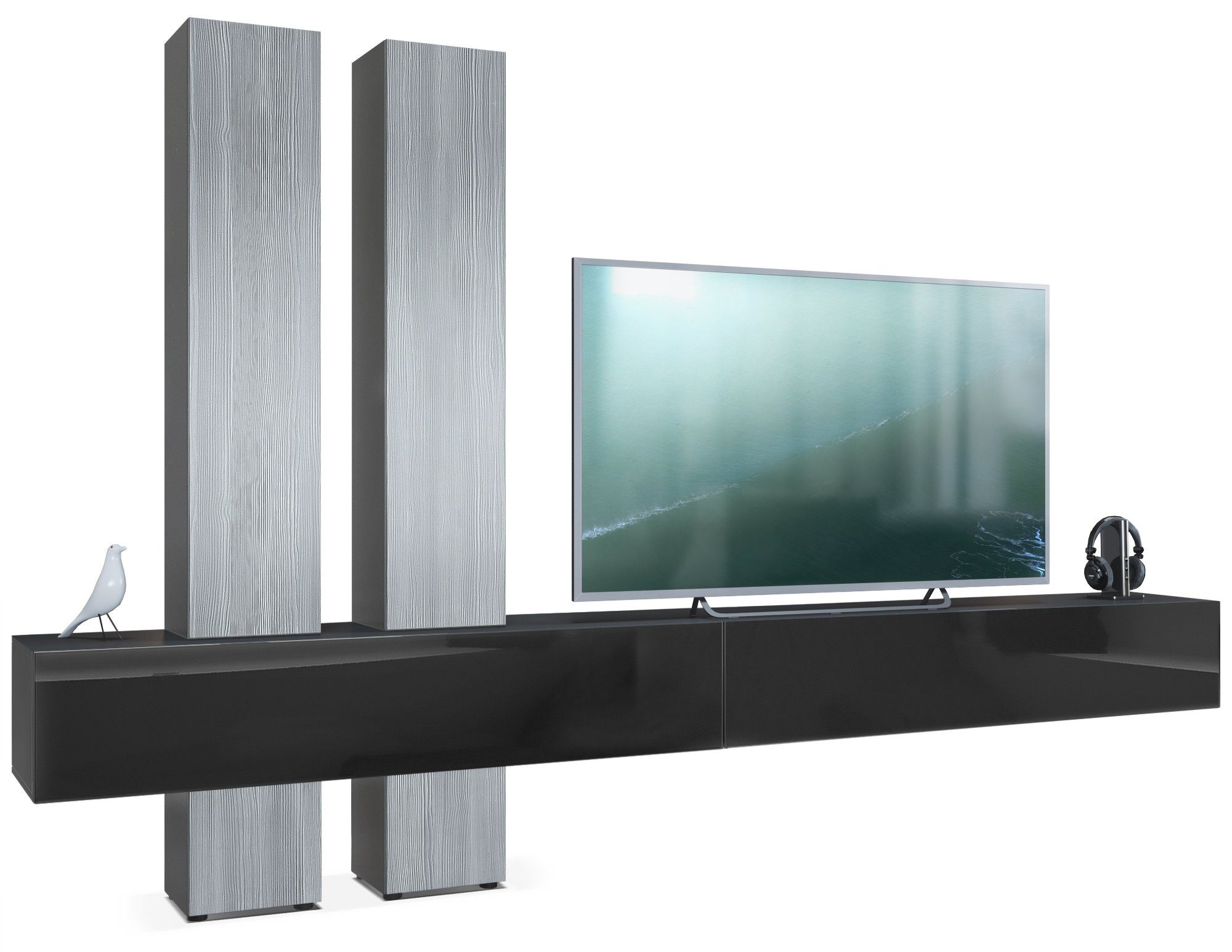 Diese einzigartige Wohnwand bringt nicht nur Stil in Ihr Zuhause, sondern bietet auch reichlich Stauraum für all Ihre Bedürfnisse. Ob als Blickfang im Wohnzimmer oder als praktischer Platz für Ihren Fernseher und Dekor, die Moja Wohnwand überzeugt auf ganzer Linie.