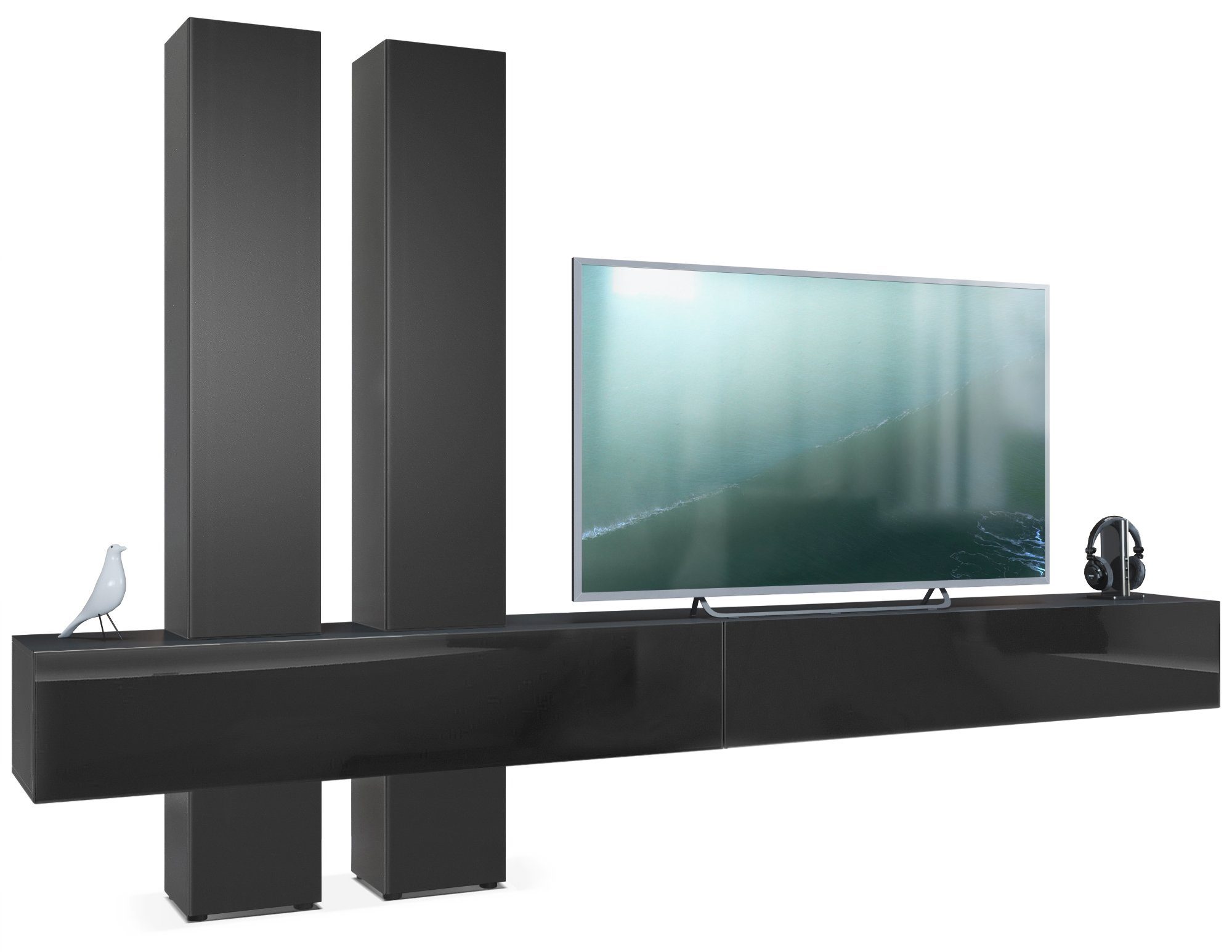 Ihre Bestellung umfasst die beeindruckende Moja Wohnwand, eine ausführliche bebilderte Montageanleitung sowie sämtliches benötigtes Montagematerial. Freuen Sie sich auf großzügige Maße von circa (BxHxT) 330 x 204 x 39 cm, wie auf den Abbildungen anschaulich dargestellt.
