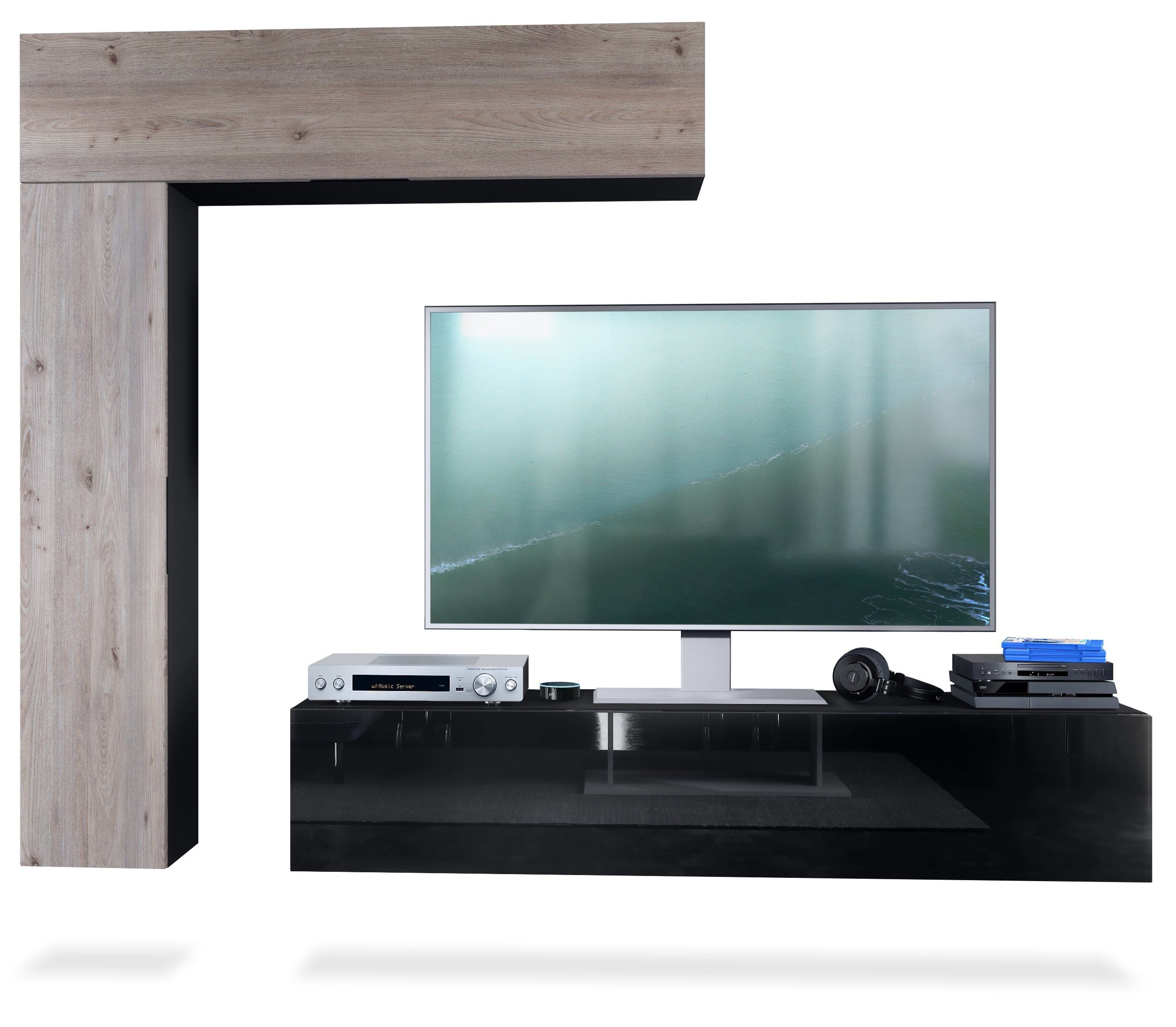 Der Lieferumfang umfasst die komplette Wohnwand, eine ausführliche bebilderte Anleitung sowie das benötigte Montagematerial. Ein schneller und reibungsloser Aufbau ist gewährleistet. Die Abmessungen der Mediawand betragen etwa 320 x 182 x 39 cm (BxHxT).