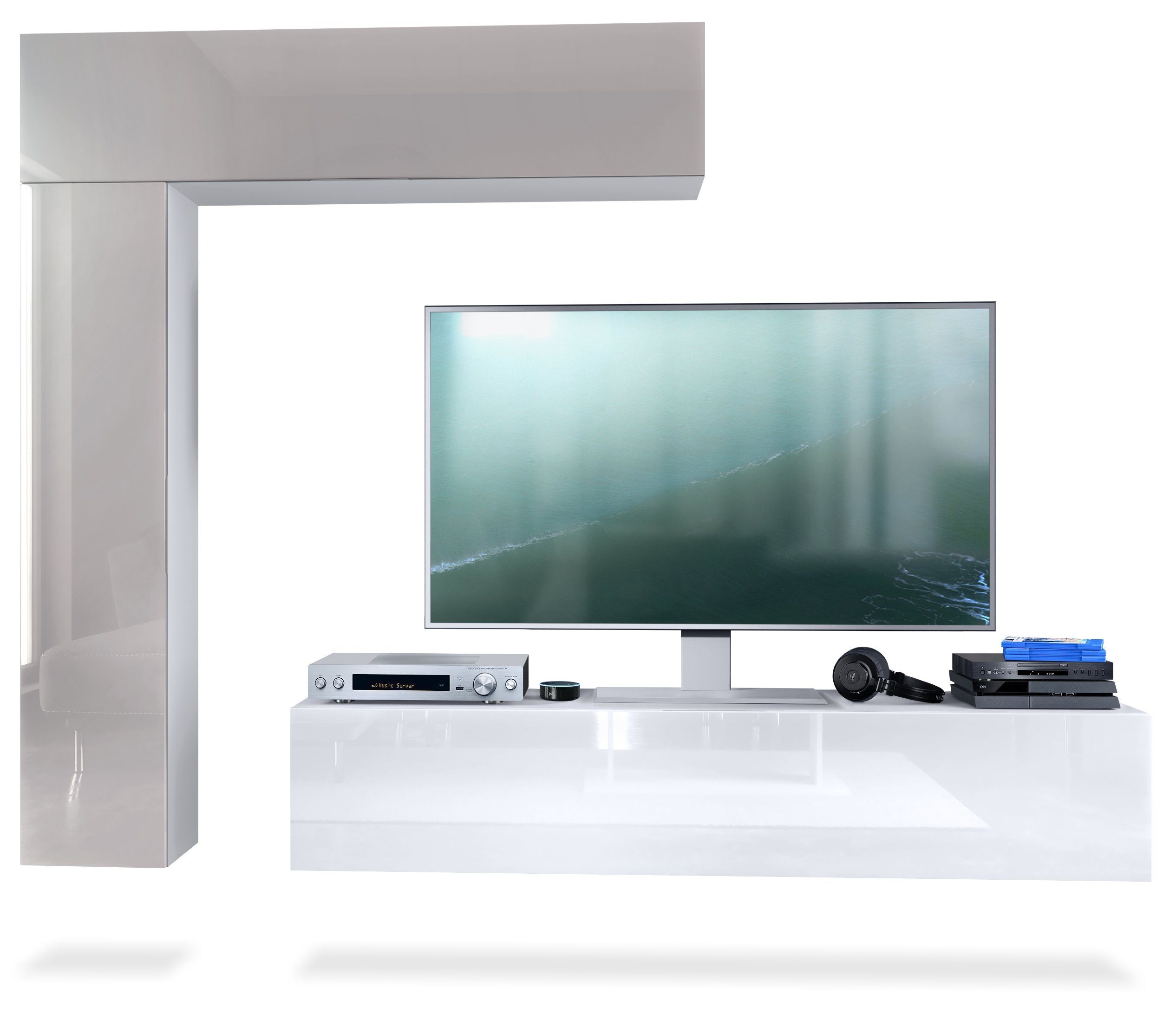 Der Lieferumfang umfasst die komplette Wohnwand, eine ausführliche bebilderte Anleitung sowie das benötigte Montagematerial. Ein schneller und reibungsloser Aufbau ist gewährleistet. Die Abmessungen der Mediawand betragen etwa 320 x 182 x 39 cm (BxHxT).
