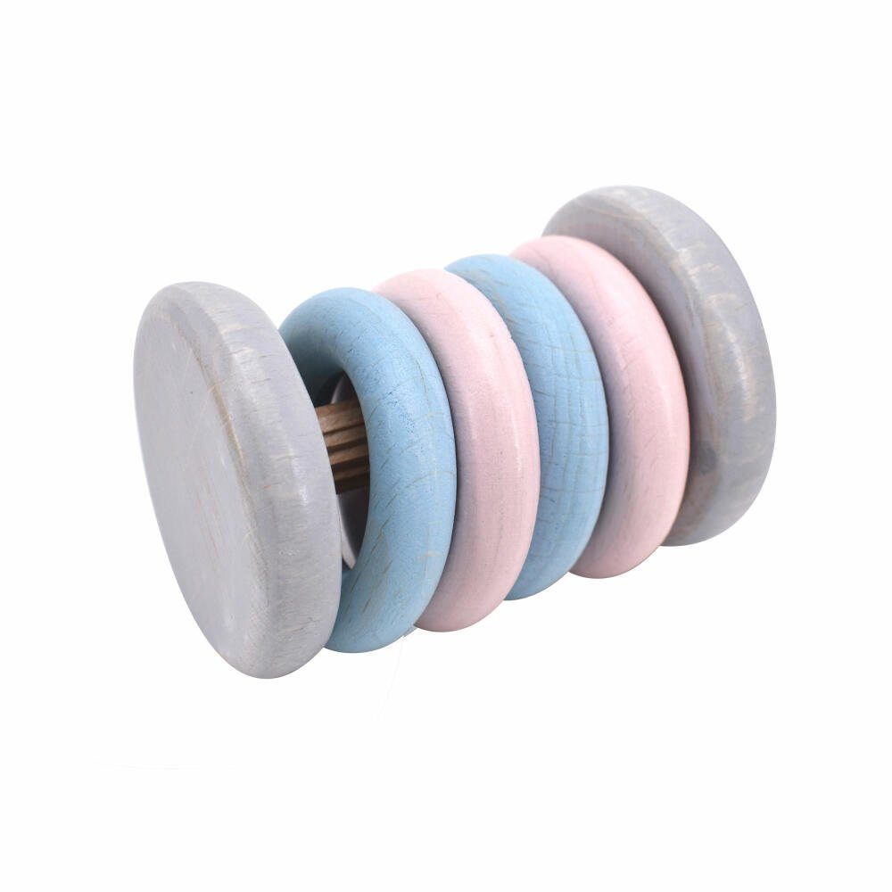 Die bunten Holzscheiben der Klapper-Rassel können nach Herzenslust geschüttelt, geschoben und gedreht werden und bieten unzählige Möglichkeiten zum Anfassen, Tasten und Erkunden. Kinder lieben den hellen, freundlichen Klang der Klapper-Rassel. Buchenholz, in Deutschland gefertigt