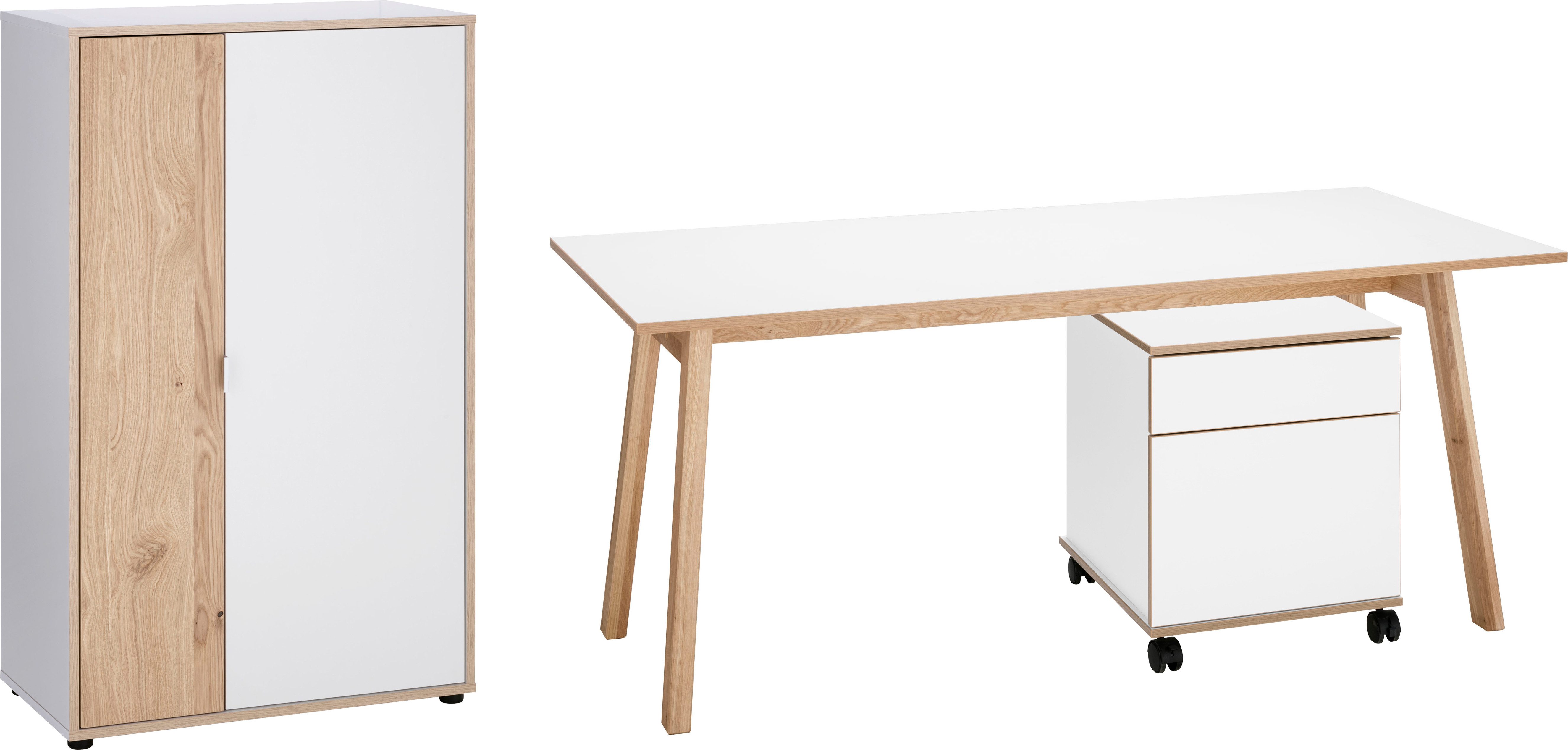 Set beinhaltet | Schreibtisch, Rollcontainer und Aktenschrank |