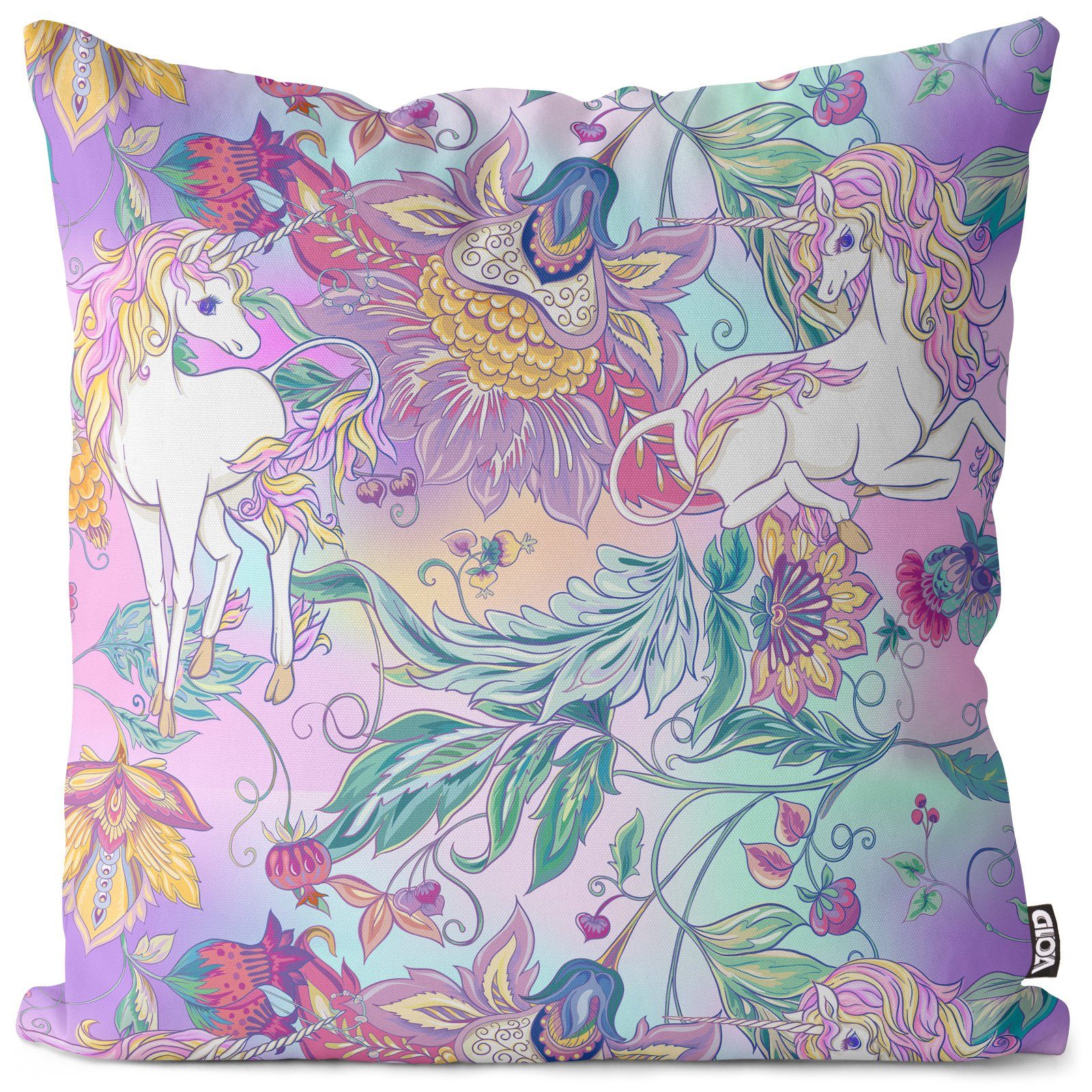 VOID Kissenbezug, (1 Stück), Einhörner Zauberwald Mädchen Einhorn Blumen Rosa Regenbogen Pferd Spi