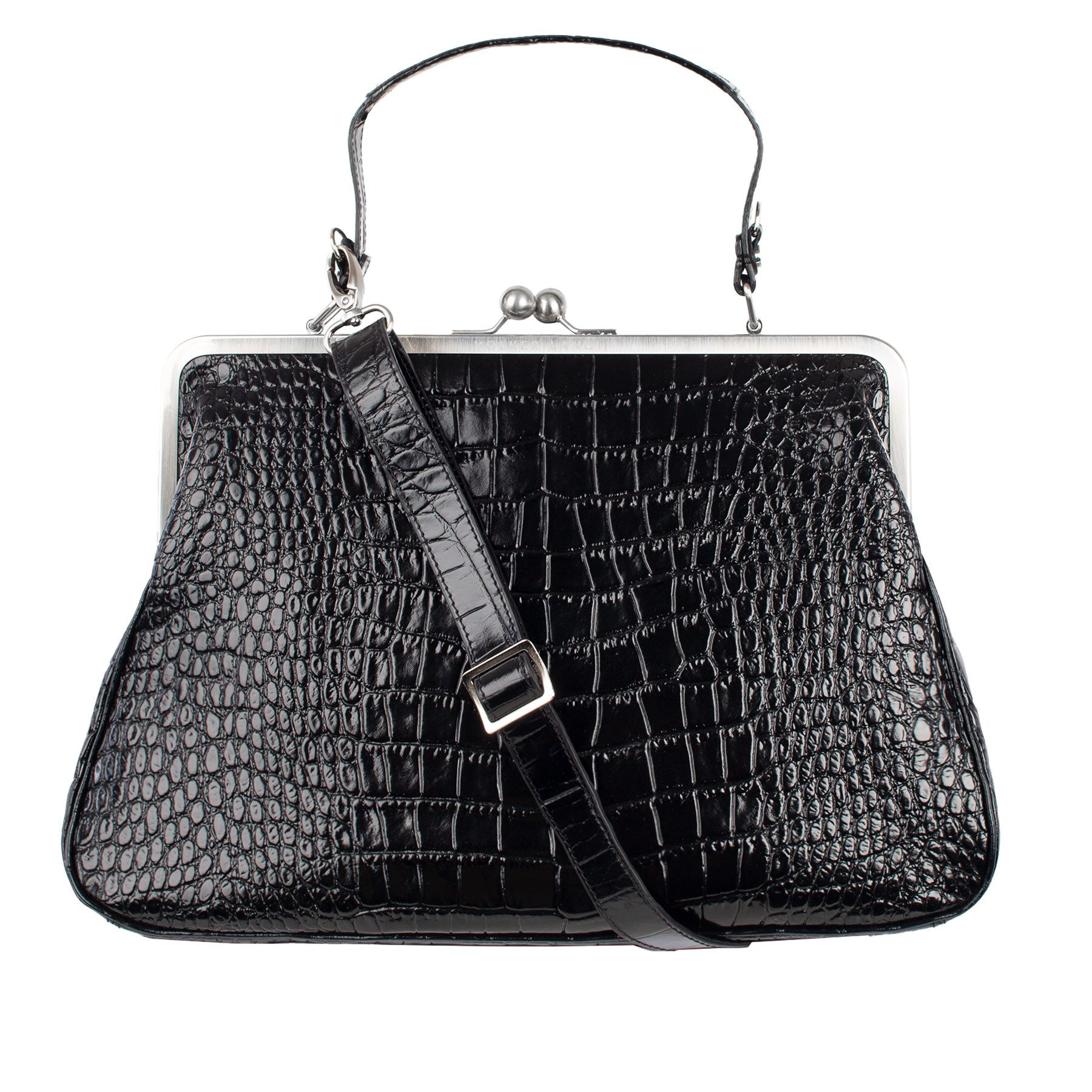 Materialeigenschaften | - Große Bügeltasche mit Boden - Aus 100% italienischem Leder - Innenfutter im Glencheck Muster - Zwei Gardinensteckfächer innen - Verstellbarer, langer Riemen - Riemenlänge ca. 150 x 2,5 cm - Maße: 37 x 26 x 11 cm (B x H x T) |