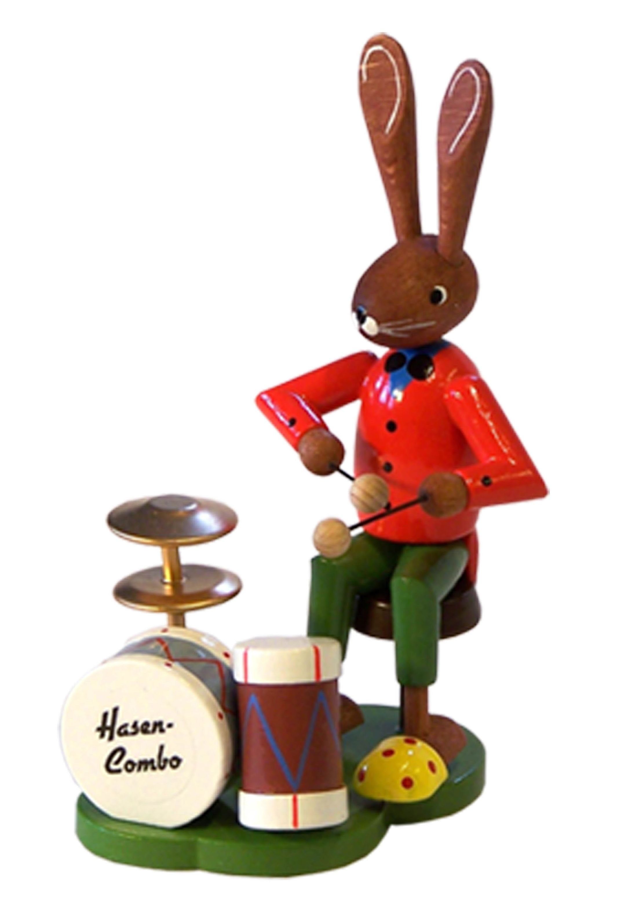 Osterdekoration Osterhasentrommler bunt Dieser schöne Osterhase hat eine Höhe von 12 cm und ist farbig gestaltet. Der Hase sitzt an seinem Schlagzeug und trommelt kräftig. Всеs wird in verschiedenen Arbeitsschritten komplett in Seiffen in einem kleinen Familienbetrieb gefertigt Höhe 12cm NEU |