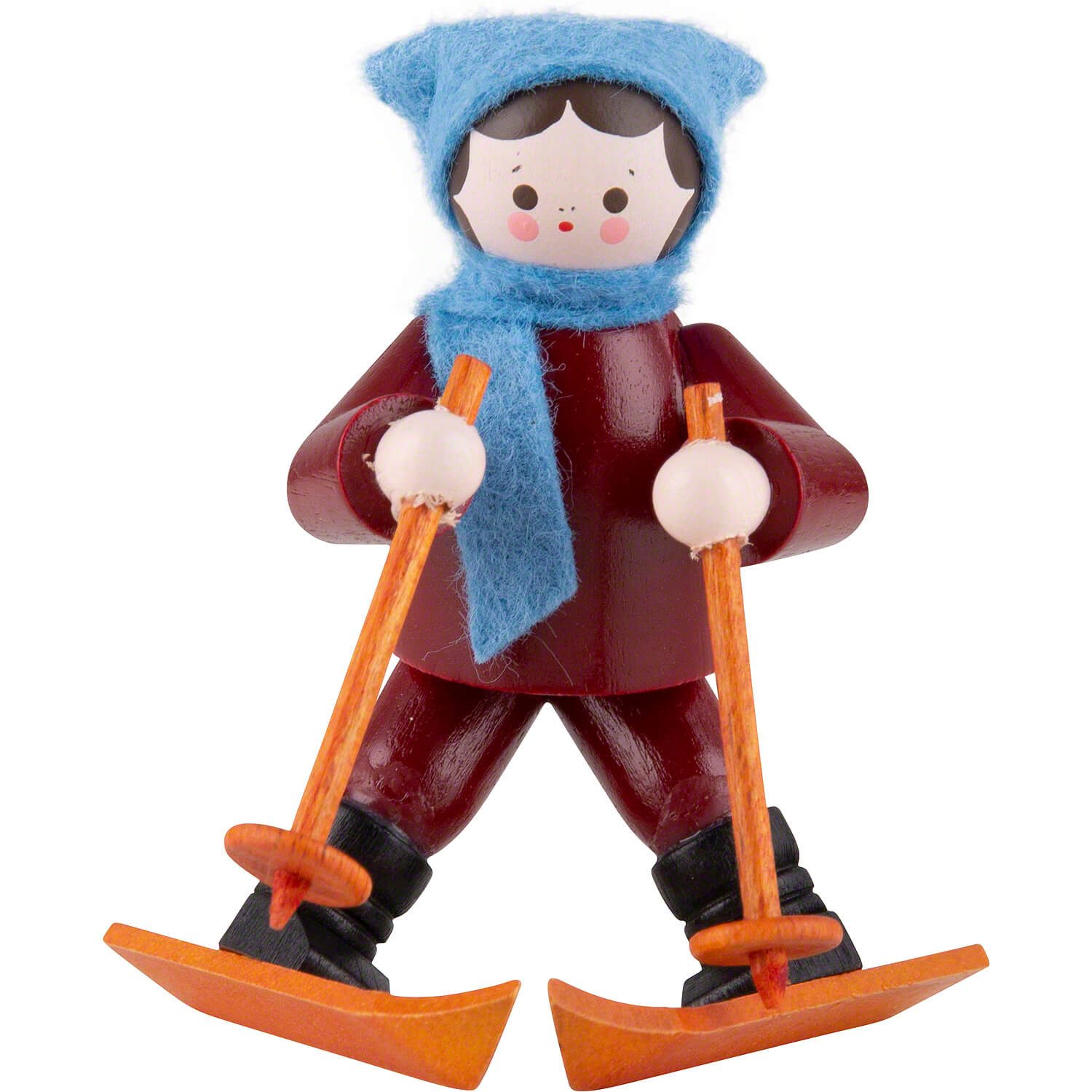 Volkskunstwerkstatt Romy Thiel Dekofigur Thiel-Figur Anfängerin Mädchen mit Ski - bunt (5,5cm) von Romy Thiel