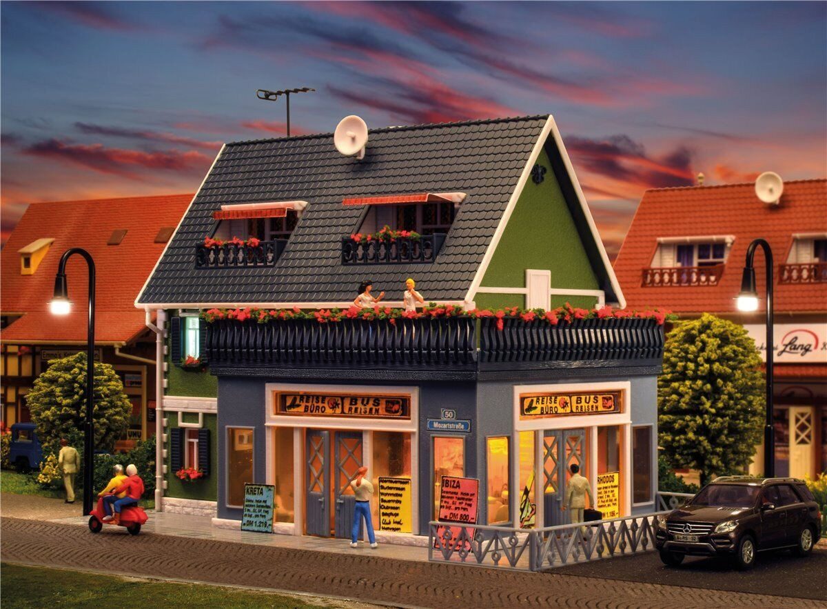 Modelleisenbahn-Gebäude Vollmer 43616 H0 Reisebüro mit Inneneinrichtung und Beleuchtung