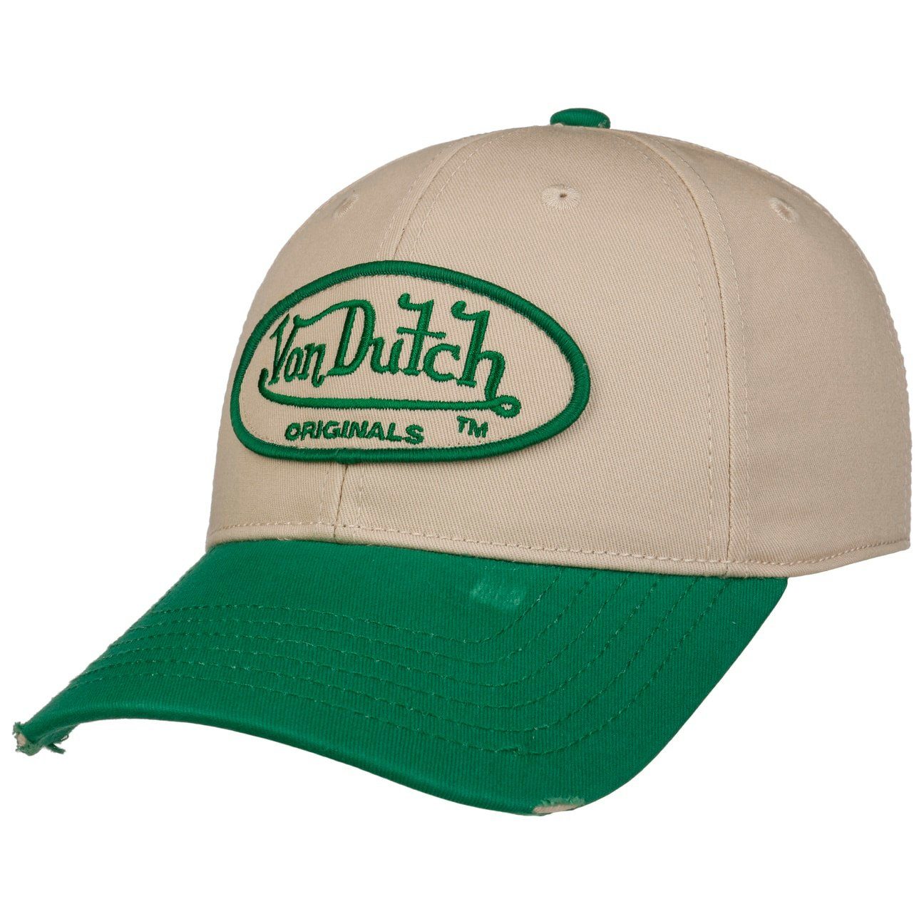 Die Cap ist mit einem blauen Logo-Stick auf der Vorderseite versehen, der das unverwechselbare Emblem von Von Dutch trägt und sofort ins Auge fällt. Der leicht gekrümmte Schirm verleiht der Cap nicht nur einen klassischen Look, sondern bietet auch Schutz vor Sonne und Regen.
