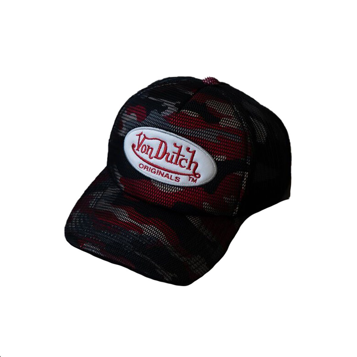 Von Dutch Originals Trucker Cap Camo in schwarz/rot.