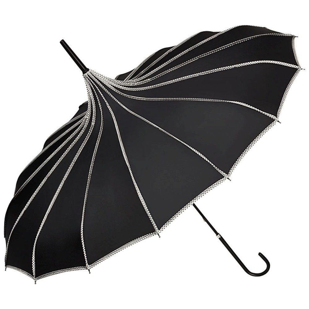 MODISCHES DESIGN: Durch seine besondere Form und klare Linienführung ist dieser Schirm das ideale Accessoire für Design-Fans. Die Pagodenform mit 16 Segmenten (ein normaler Schirm hat 8) und eine besonders elegant gearbeitete Schirmspitze machen diesen Schirm zu einem kleinen, feinen Kunstwerk, das die Besitzerin auch bei schlechtem Wetter schmückt. Mit seinen liebevoll gearbeiteten Details passt dieser Schirm zu jedem Outfit JUSTINE ALS HOCHZEITSSCHIRM: Dieser Schirm lässt Sie an Ihrem Hochzeitstag nicht im Regen stehen. Falls es am „Tag aller Tage“ regnen sollte, werden Sie perfekt vorbereitet sein. „Justine“ vervollständigt Ihr Hochzeitsoutfit auf besondere Art und Weise UNSERE QUALITÄT: Die Pagode hat ein Fiberglasgestänge, ein Stahlgestell, einen Stahlstock, eine schwarze Schirmspitze und einen schwarzen Kunstledergriff. Durch die 16 Fiberglasstangen ist der Schirm ganz besonders stabil und windfest. Natürlich schützt „Justine" Sie zuverlässig gegen Regen und UV-Strahlung (100 % Regenschutz / 95 % UV Schutz). Maße: Schirmdurchmesser: 90 cm / Stock-Длина: 87 cm, Gewicht 440g, stabiler Handöffner EIGNET SICH BESONDERS FÜR: Design- und modebewusste Damen mit einem exquisiten Geschmack