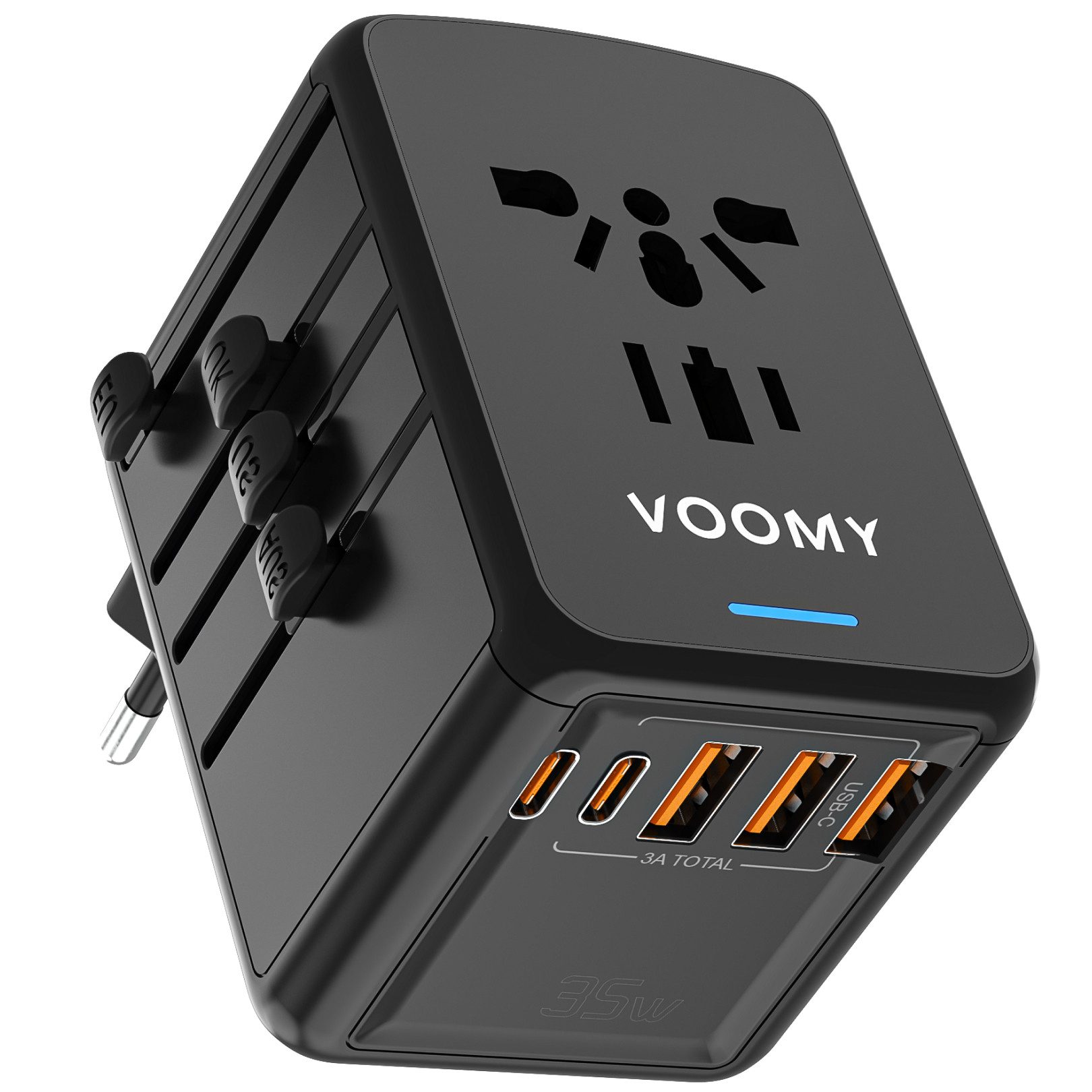 Der Voomy Universal World Power Plug ermöglicht den weltweiten Zugang zu Strom dank der leicht faltbaren Stecker für verschiedene Länder. So haben Sie Zugang zu Strom in Ländern wie: England (UK), Amerika (USA), Australien (AU), Asien (AS), Südamerika und Europa (EU). Sie können verschiedene Geräte an den Stecker anschließen und z. B. Ihr Handy mit den 4 USB-Anschlüssen aufladen, von denen 3x USB-A und 1x USB-C sind.