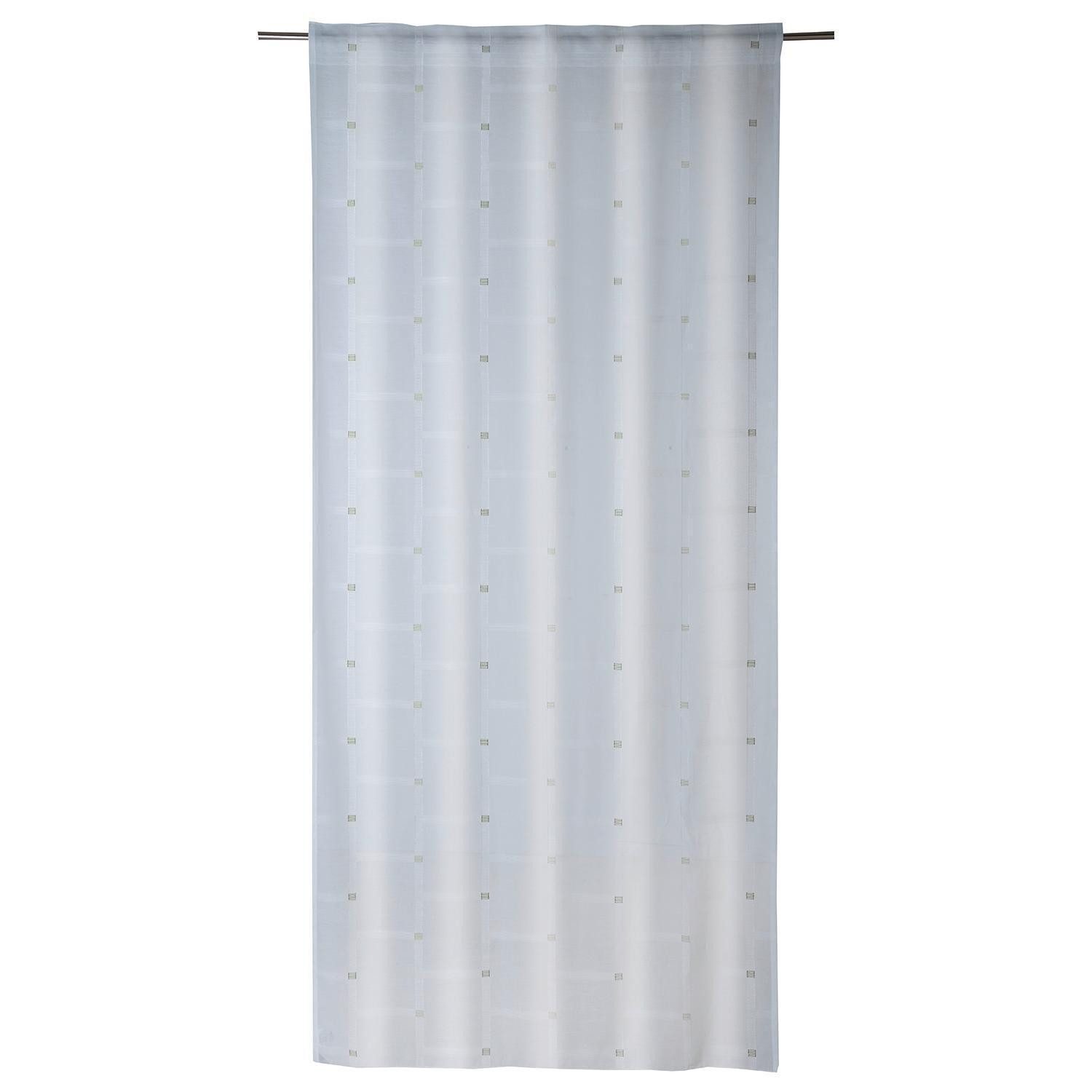 Der Schlaufenschal NIGITA in Weiß und Grün verbindet zeitloses Design mit praktischer Funktionalität. Gefertigt aus 100 % Polyester besticht er durch sein dezentes Rautenmuster und den transparenten Stoff, der für eine helle und freundliche Raumatmosphäre sorgt. Mit den Maßen 135 x 245 cm bietet der Schal großzügige Abdeckung und lässt sich dank verdeckter Schlaufen leicht anbringen. Waschbar bei 40 °C, ist er pflegeleicht und langlebig zugleich – eine elegante Fensterdekoration für moderne Wohnräume.