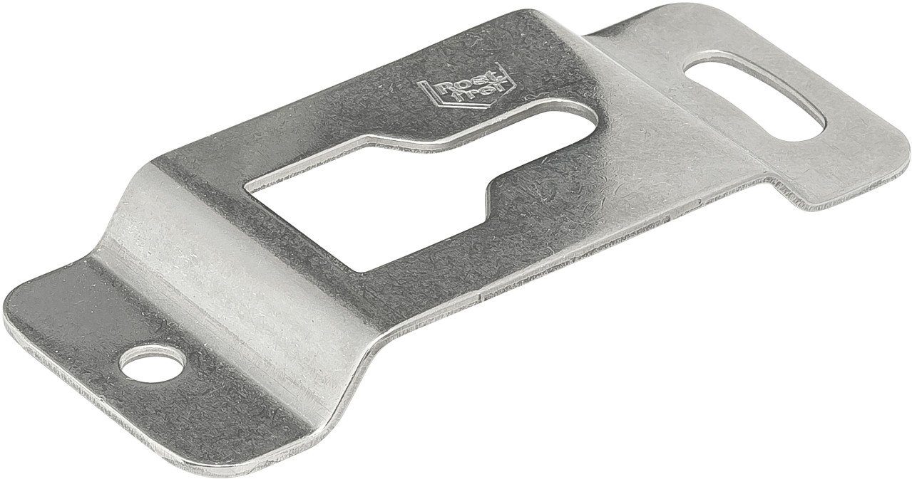 Produktdetails: Maß A: 74 mm | Maß B: 32 mm | Maß C: - | Materialstärke: 1.25 mm | Anzahl der Befestigungslöcher: 1/1 lang | Gewicht: 0.021 kg | Material: Edelstahl (V2A) | Oberfläche: - | Eigenschaft: - |