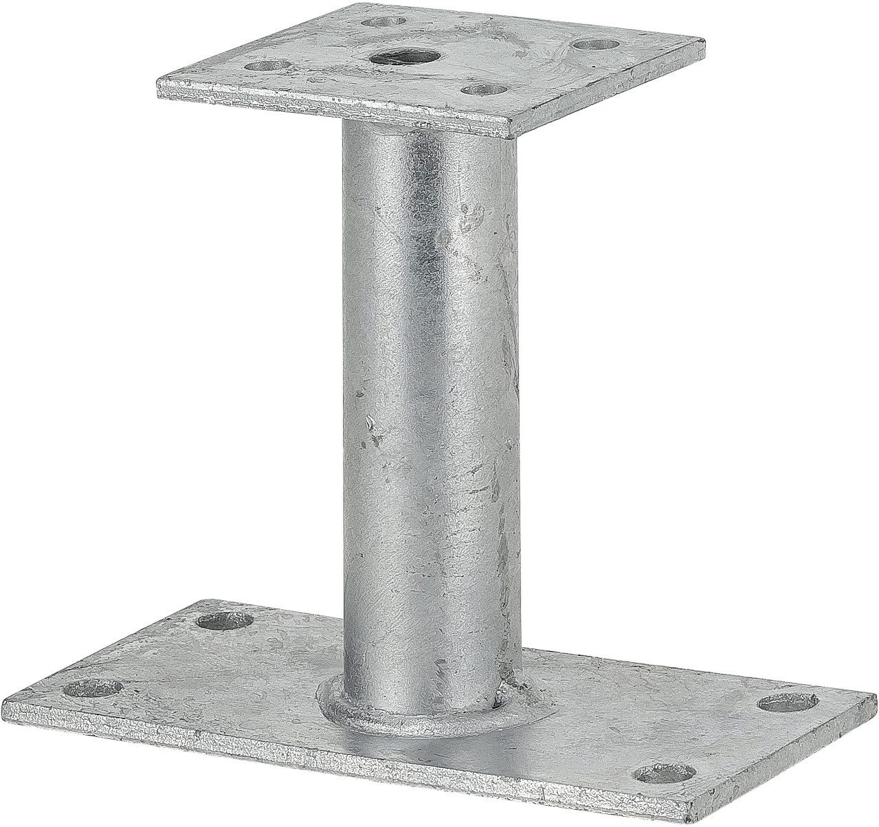 Zum Bau von Terassen, Bühnen, Podesten o.ä. wird dieser Stützenschuh eingesetzt. Er besteht aus einer Platte, die am Boden angeschraubt wird, einer stabilen Rohrdolle sowie einer kleineren Platte, die sich zur vertikalen Montage der Holzbalken eignet. Das Material ist feuerverzinkt und sorgt für einen ausgezeichneten Schutz gegen Witterungseinflüsse.