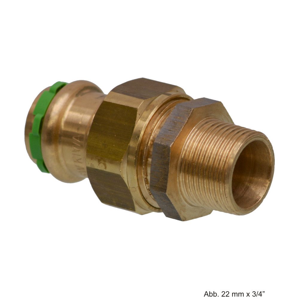 VSH SudoPress Kupfer/Rotguss SP4331GV Durchgangsverschrbg., AG, 18mmx3/4" - Eigenschaften: VSH SudoPress Kupfer mit Merkmal Visu-Control Verwendung: Für die Kupferrohrinstallation SudoPress-Fittings aus Kupfer (CU) Anwendungen: Trinkwasser Heizung Kühlung Druckluft Solarenergie Vakuum Segmente: Zweckbau Industrie Schiffbau Zu verarbeiten mit V-Kontur Presswerkzeug SP452EDX