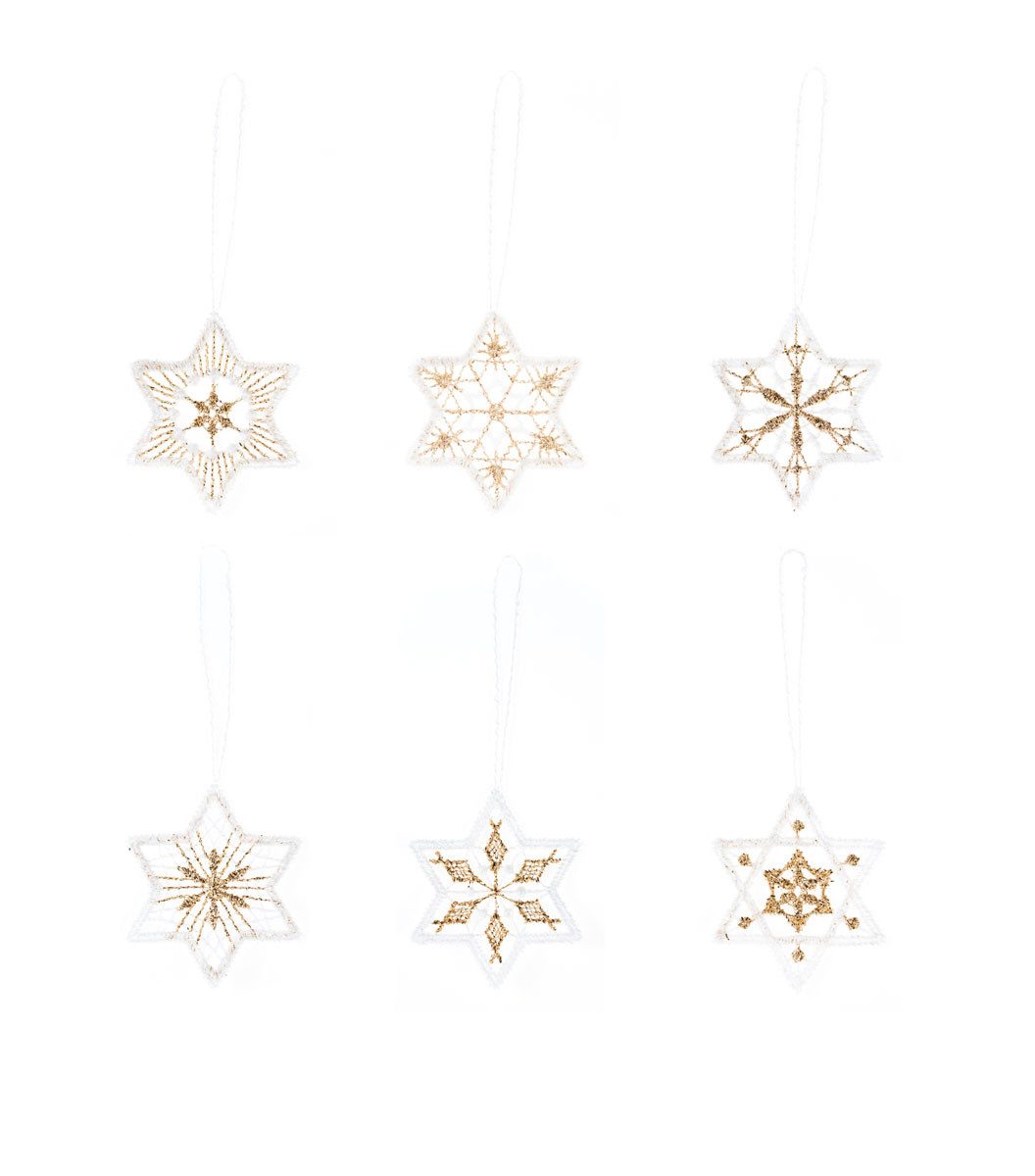 Baumbehang"Kleine Sterne" 6-er Set, echt Plauener Spitze