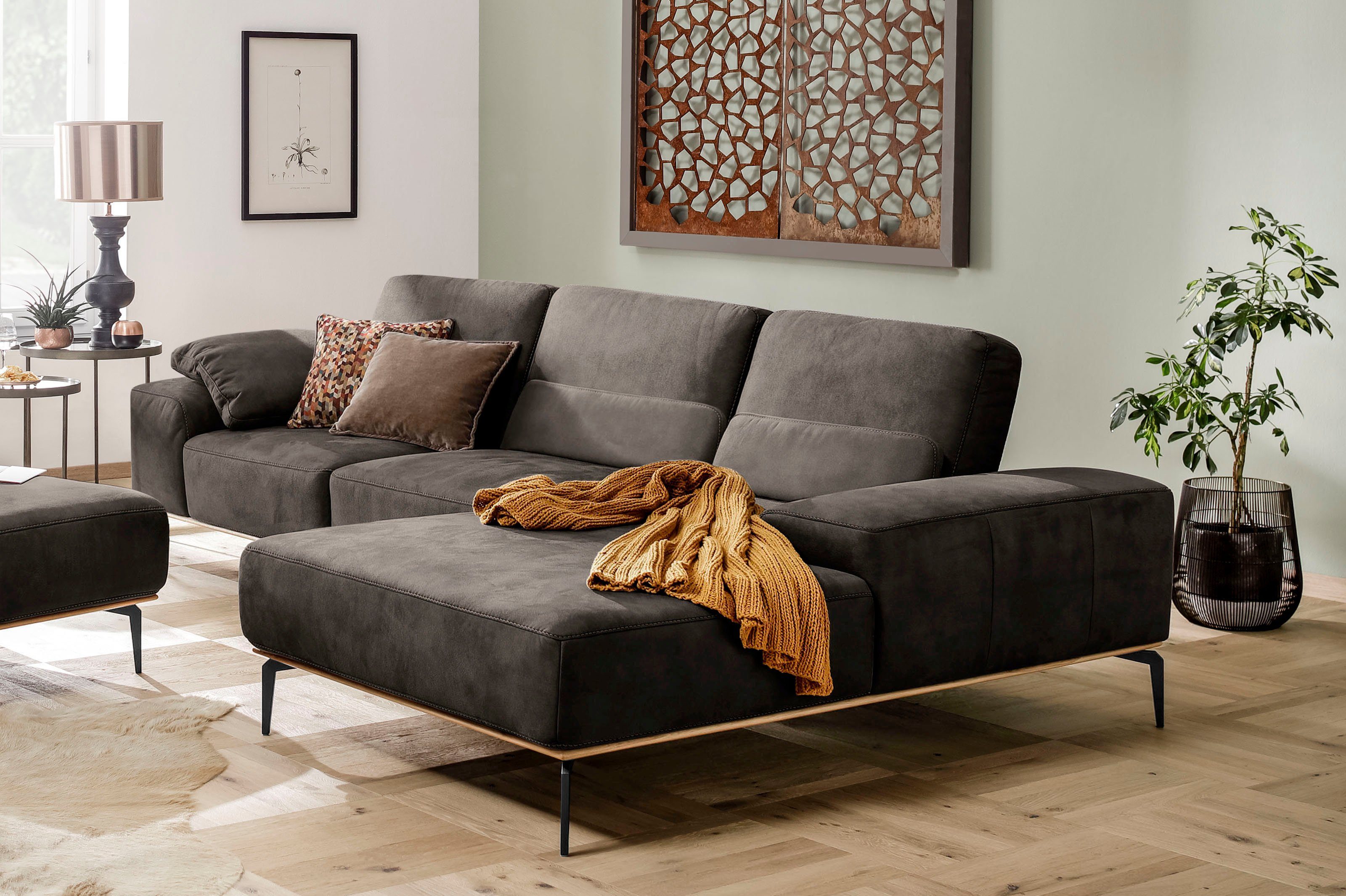 Wissenswertes | Der Sockel in Echtholz Eiche integriert sich wunderbar ins Design Ihres Möbelstücks Flexible Sitztiefe: Bei den Sofas kann der gesamte Rücken pro Sitz um einige Zentimeter nach hinten versetzt werden, um eine Vergrößerung der Sitztiefe zu erzielen. Die Gesamttiefe ändert sich. Polsteraufbau: