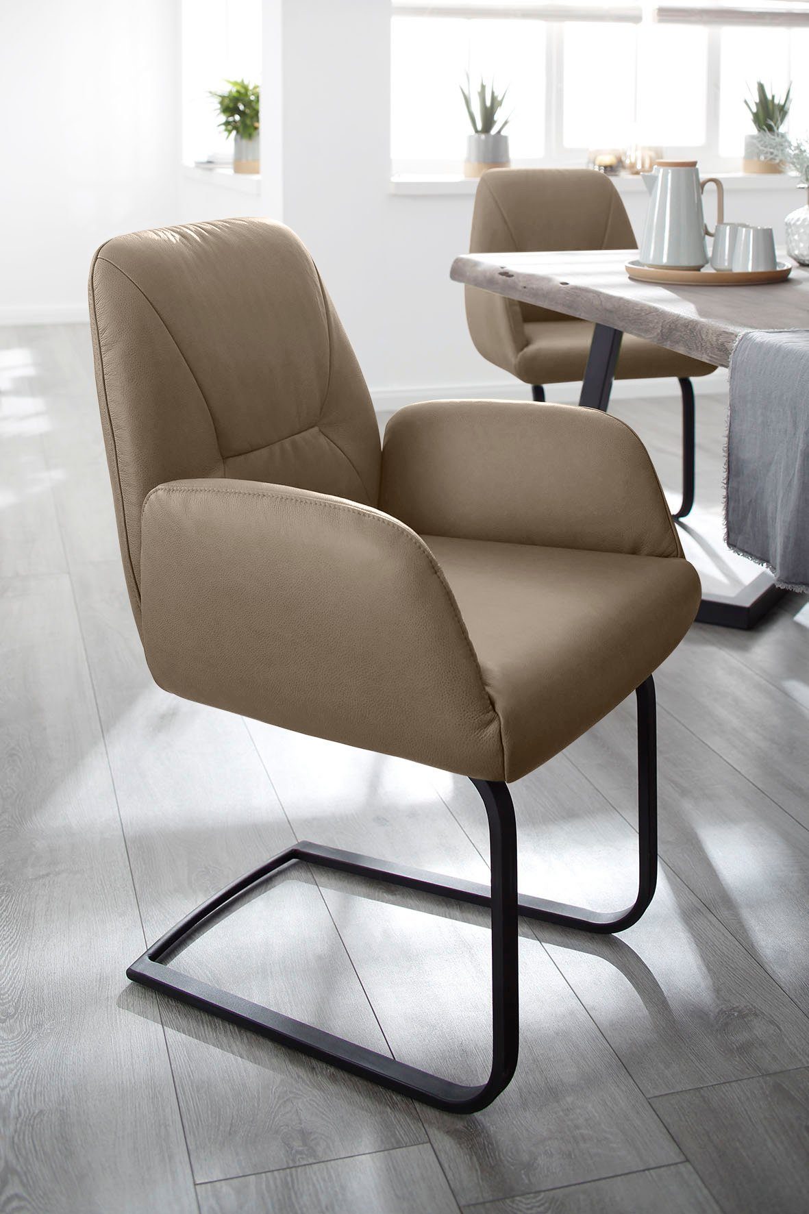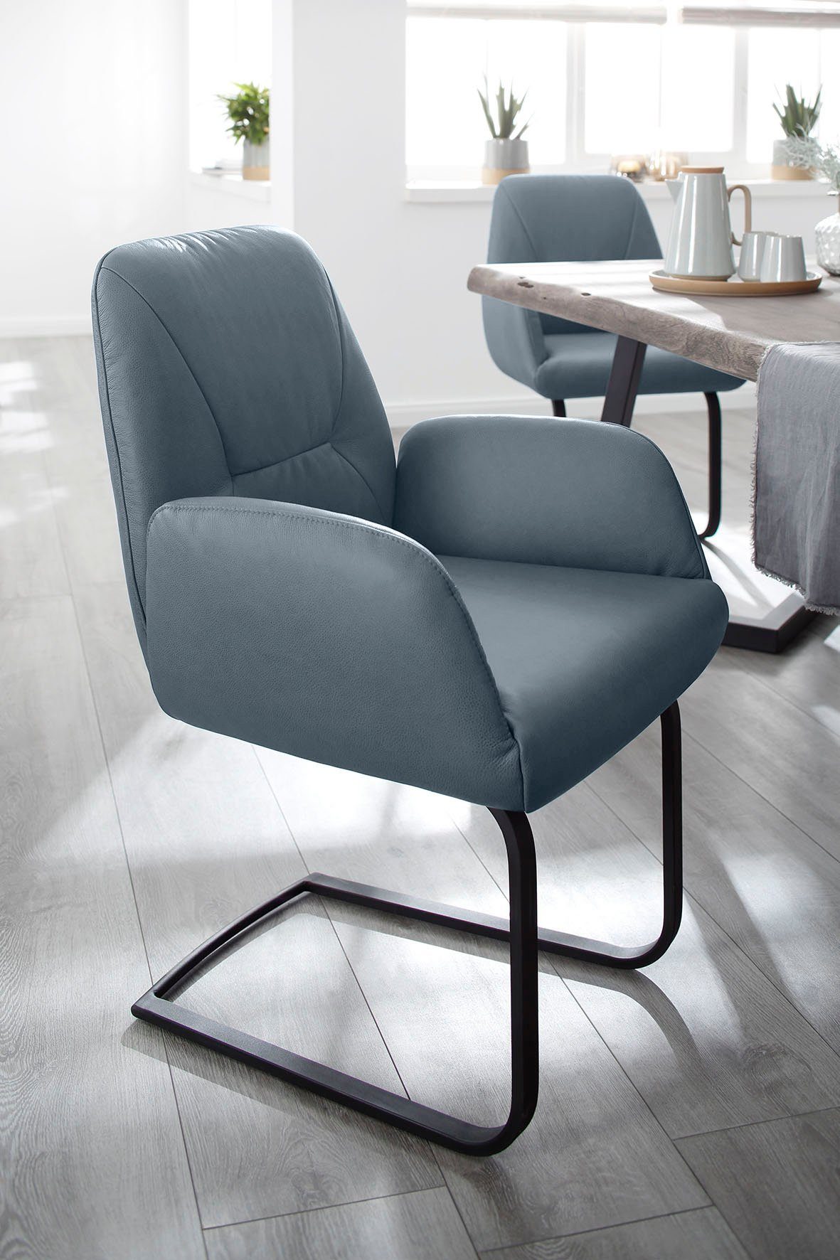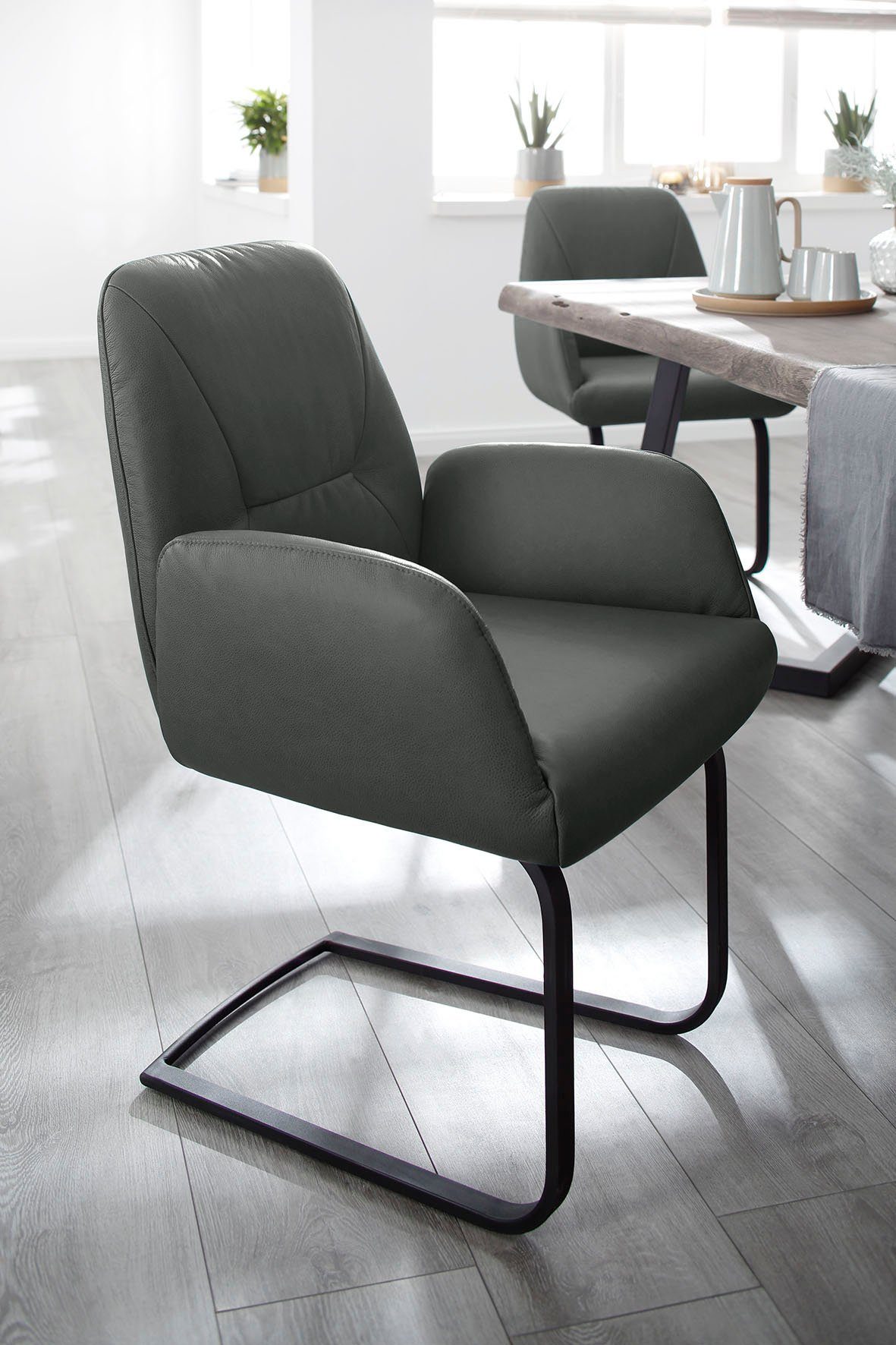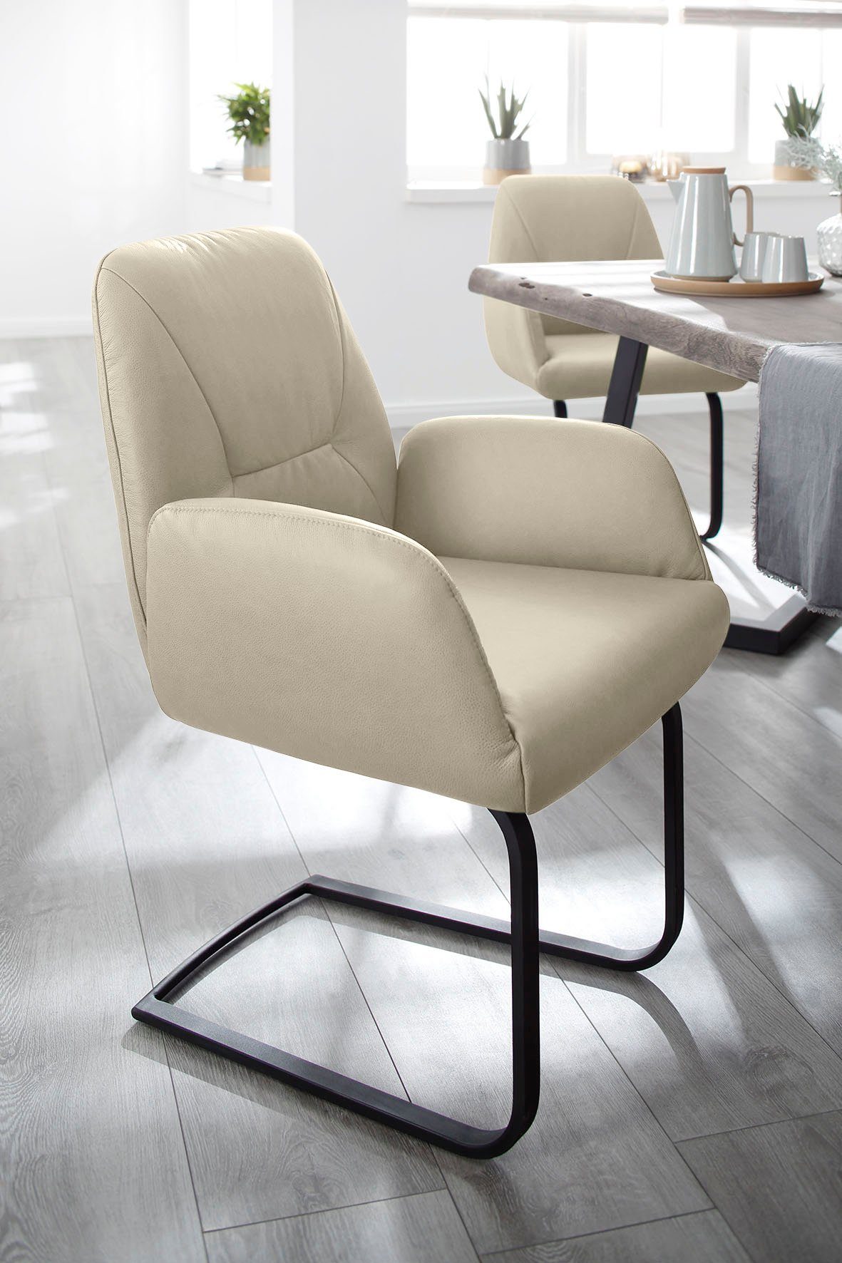 Legere, softige Polsterung Zum Schutz Ihres Bodens bei glatten Oberflächen sollten Sie die beigelegten Filzgleiter am Gestell anbringen. |