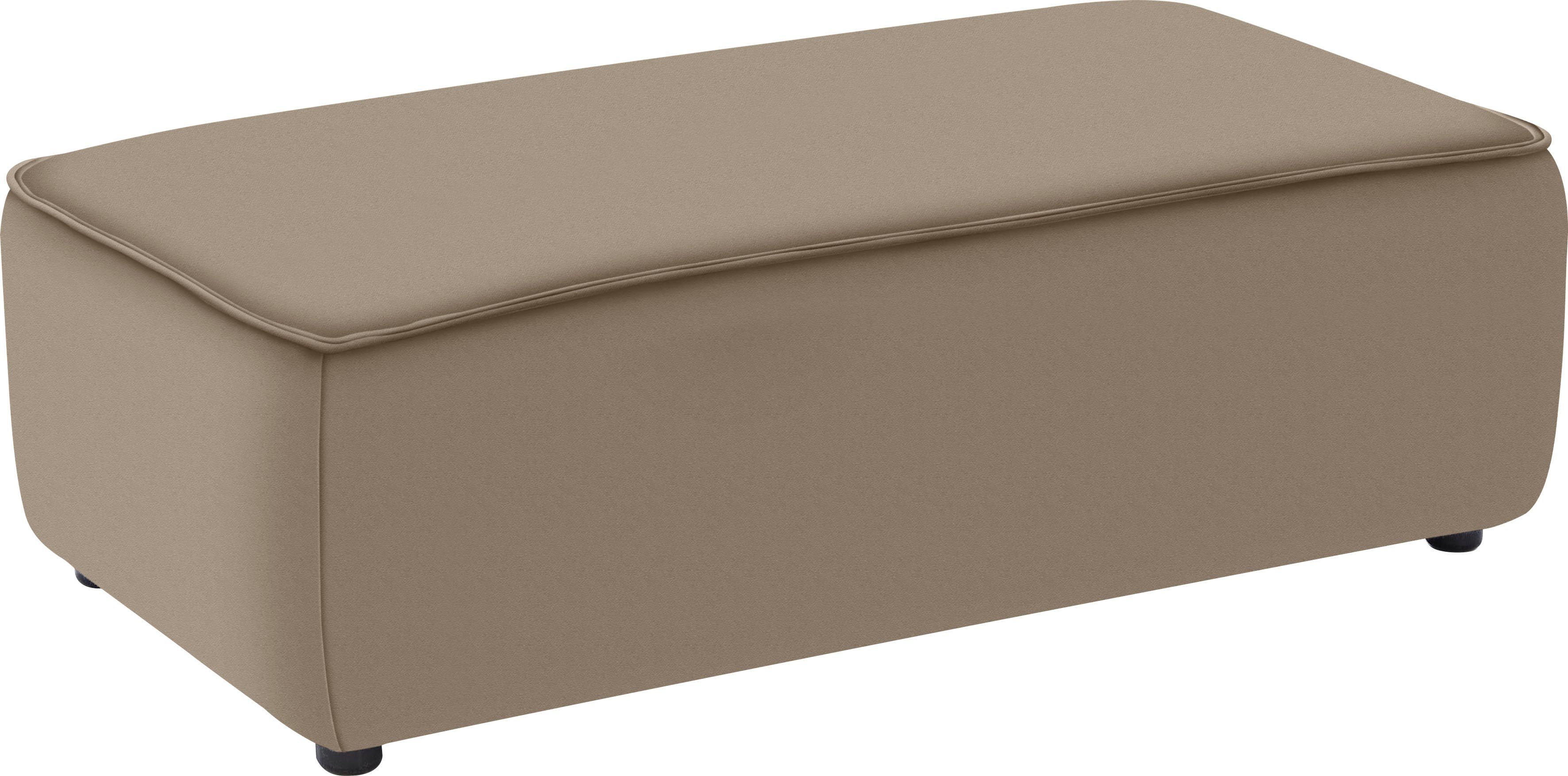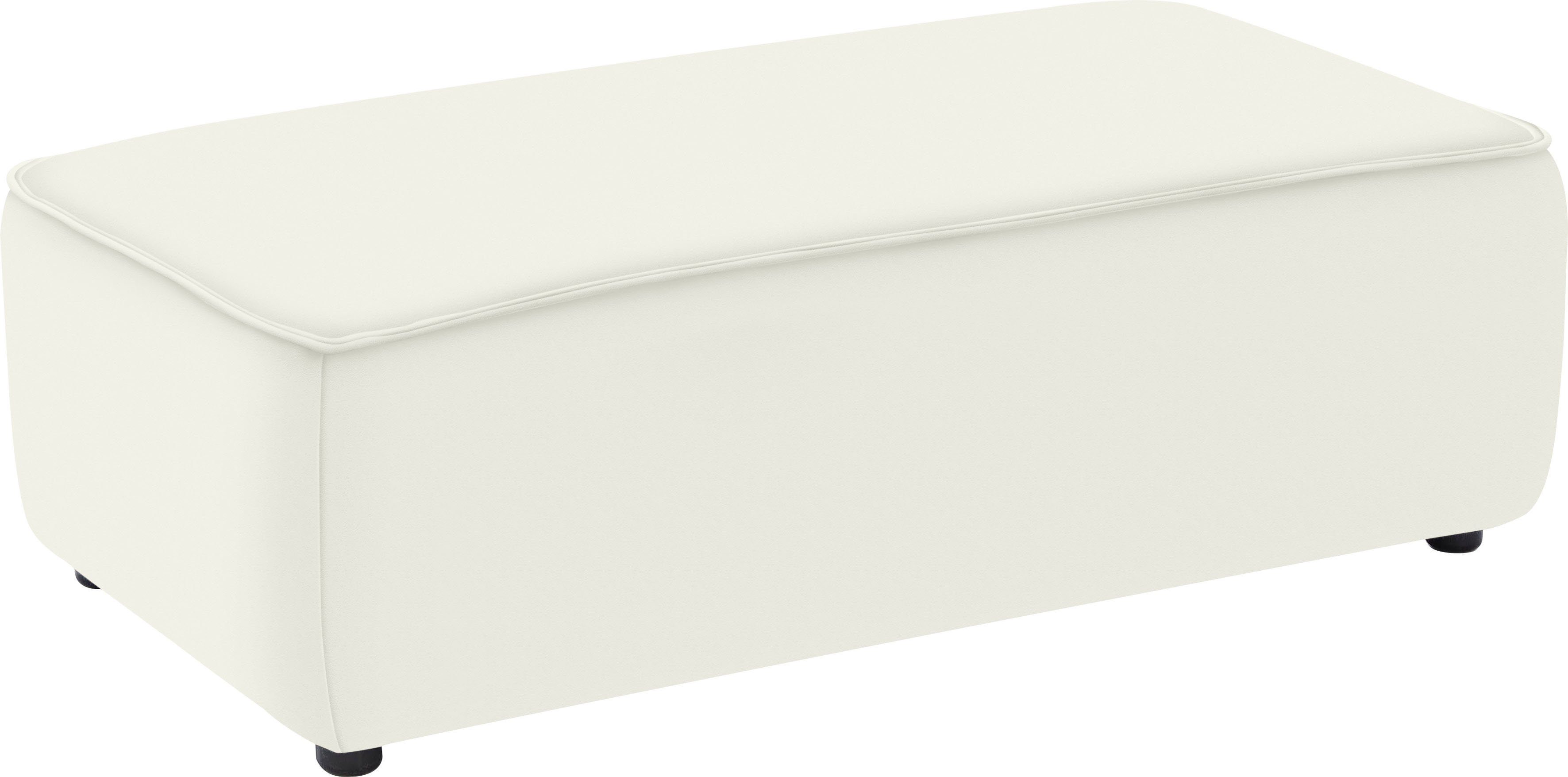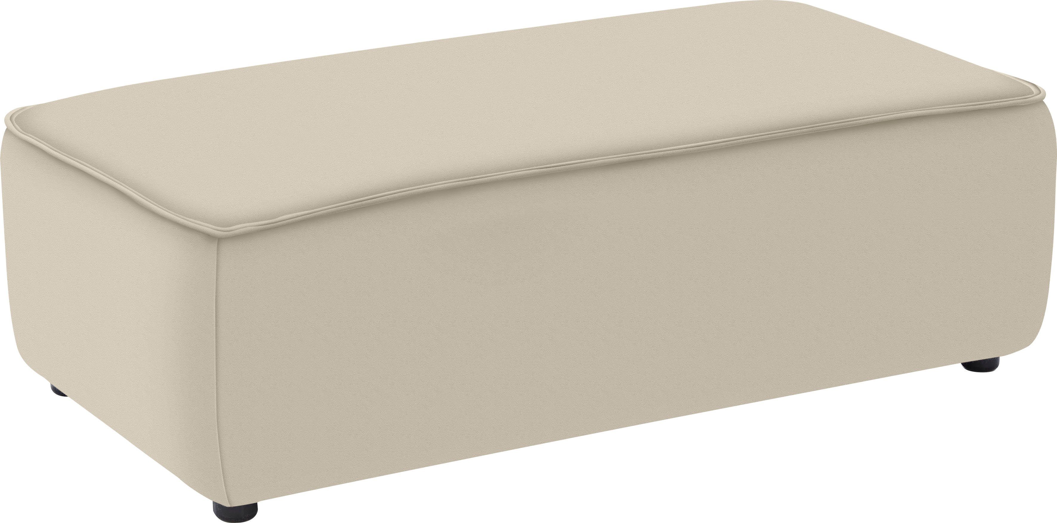 Bodenschondende Kunststoffgleiter sind nahezu unsichtbar unter dem Polstermöbel angebracht. Der Hocker besitzt nicht die selbe Breite wie die Recamiere beim Ecksofa der selben Serie, kann aber natürlich als Fußablage davor gestellt werden. Der Hocker ist passgenau zwischen den Schenkeln beim Ecksofa in der Breite 300 cm. Legere, softige Polsterung |