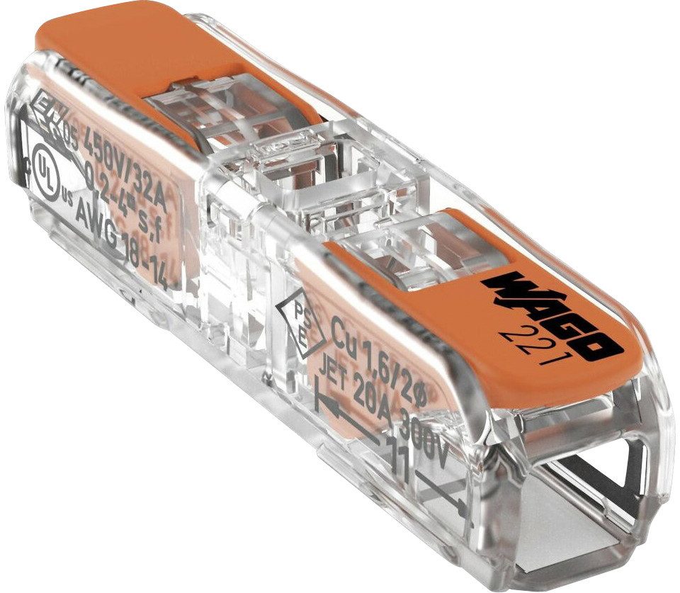 Die Verbindungsklemmen können Sie besonders leicht und schnell öffnen. Die Hebel der Serie 221 lassen sich mit geringem Kraftaufwand betätigen. Dadurch können Sie die Leiter schnell anschließen - und das komplett ohne Werkzeug! Während Sie die Leiter anschließen, sorgen die seitlichen Griffmulden dafür, dass Sie die Klemme leicht aber sicher festhalten können.