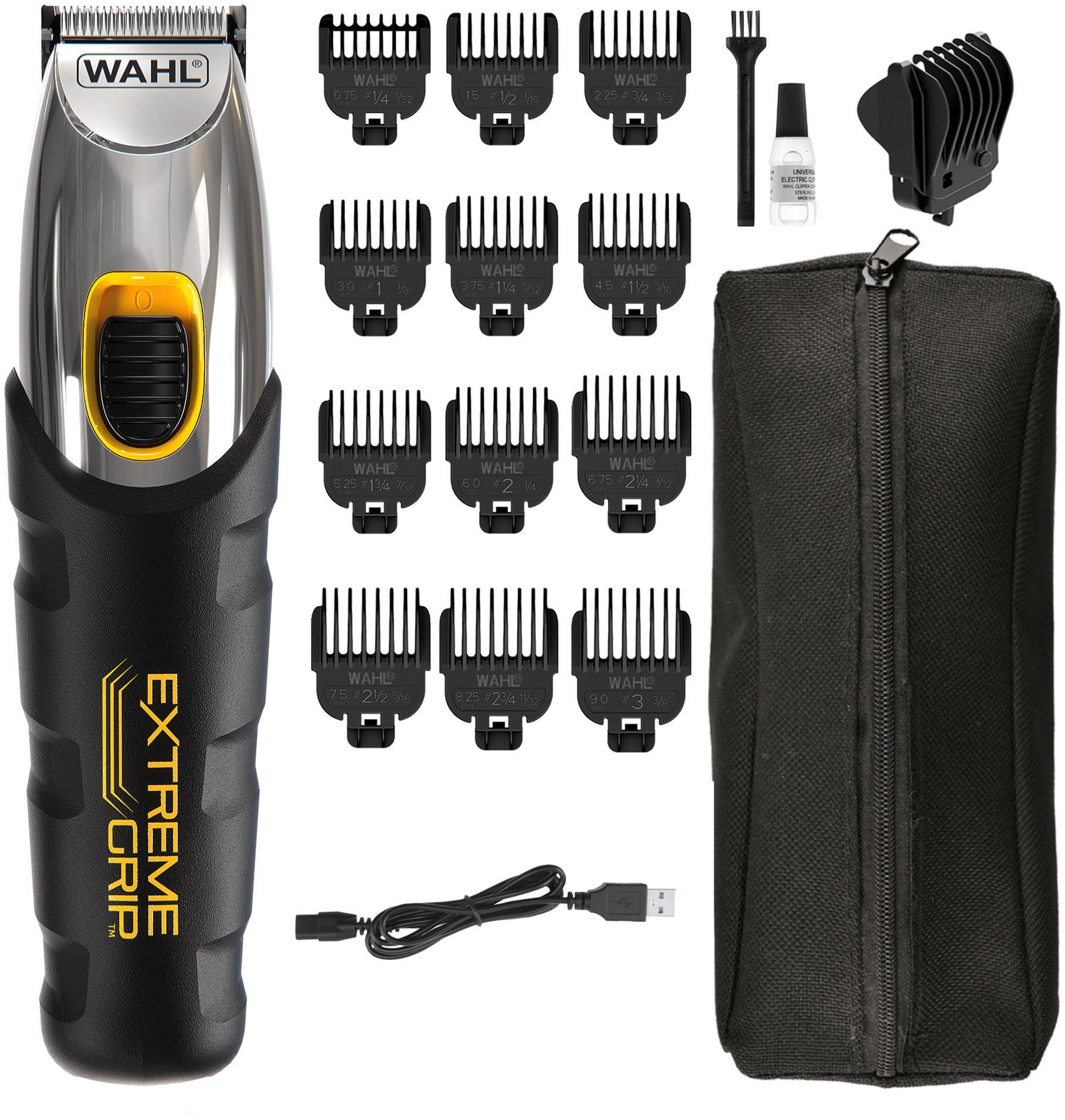 Lieferumfang | Aufbewahrungstasche Aufsteckkämme Bartkamm Bedienungsanleitung Klingenöl Reinigungsbürste USB-Ladekabel verstellbarer Kammaufsatz |