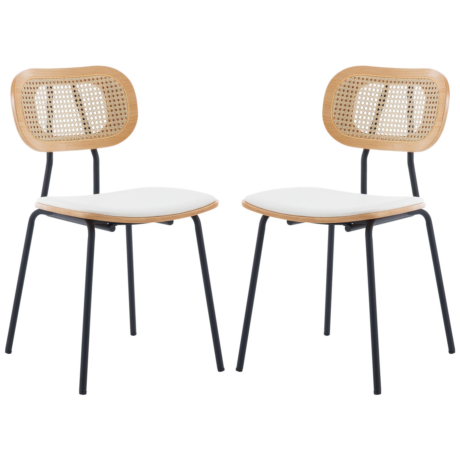 Modernes Design: Mit seiner Rattan-Rückenlehne und der gepolsterten Sitzfläche aus PU-Leder passt dieser Vintage-Esszimmerstuhl zu klassischen Interieurs und modernen Stilen.
