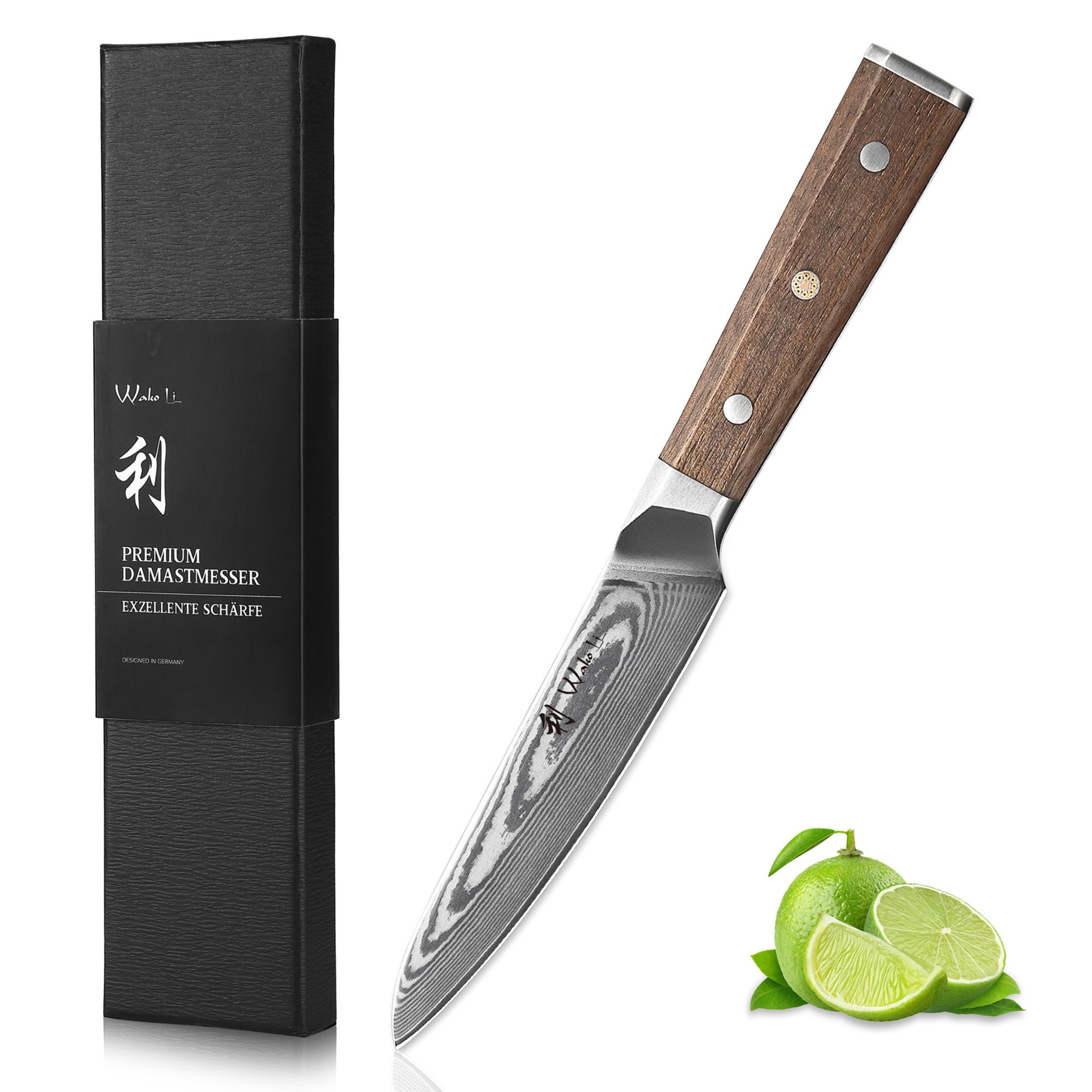 Lieben Sie es, mit hochwertigen Küchenwerkzeugen zu arbeiten? Dann wird Sie das Wakoli Damastmesser Allzweckmesser begeistern. Mit seiner 13 cm langen Klinge aus 67 Lagen echtem Damaststahl und einem VG10 Hochleistungskern verbindet es exakte Schneidleistung mit traditioneller Schmiedekunst. Der beidseitige V-Schliff im Winkel von 12 bis 14 Grad sorgt für saubere, mühelose Schnitte – ob bei Obst, Gemüse, Fleisch oder Käse. Als vielseitiges Universalmesser lässt es sich flexibel einsetzen – ideal als kompaktes Gemüsemesser, scharfes Obstmesser oder klassisches Officemesser.