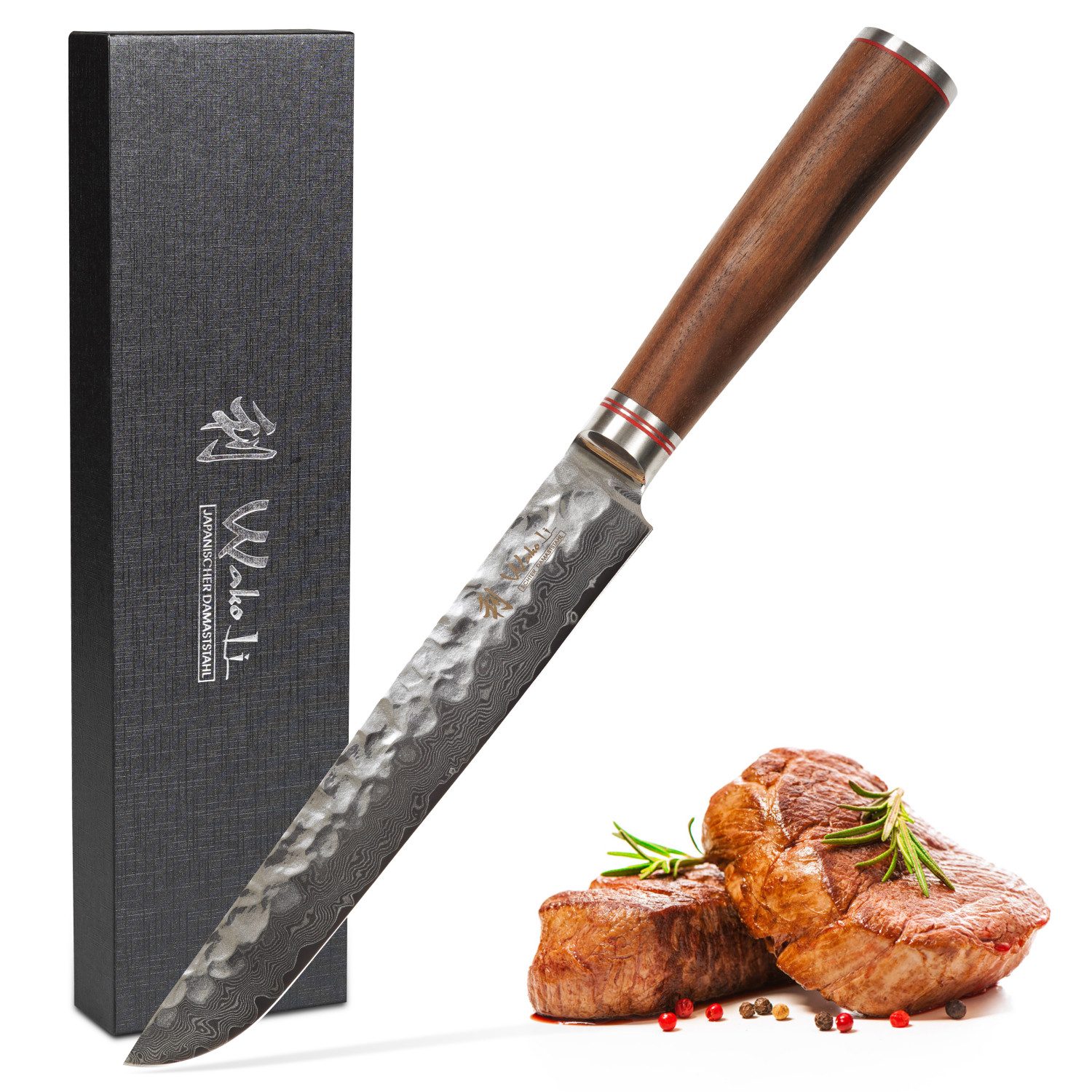 Wakoli Damast Tranchier- & Fleischmesser Hamokiri - Klinge 20 cm Длина - extra scharfes Profi Küchenmesser mit Damastklinge und Nussbaum Griff, Serie Nussbaum