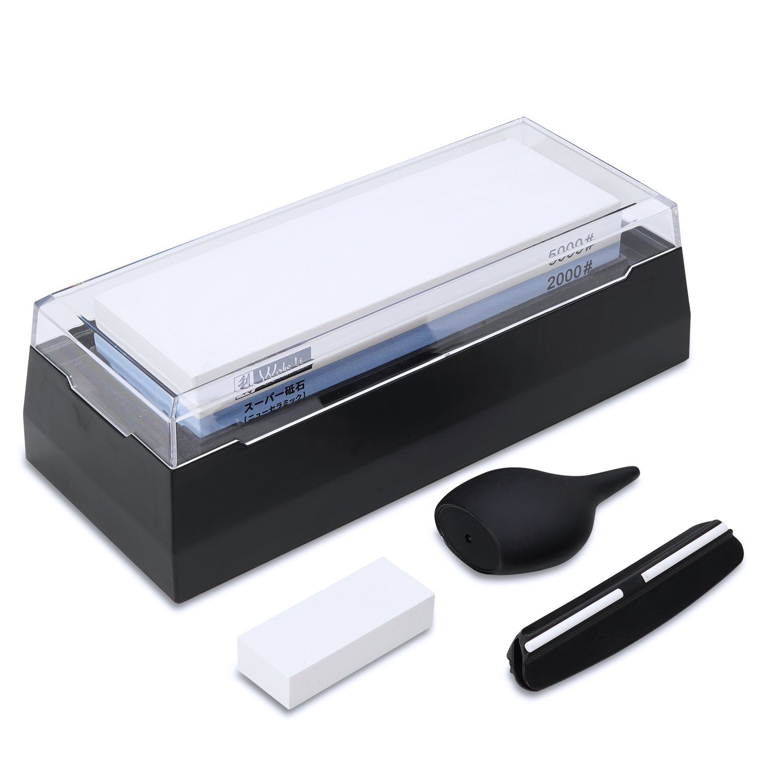 Der Wakoli Kombinations-Nassschleifstein der Körnungen 2000 und 5000 bietet sowohl Haupt- als auch Feinschliff in einem Set und richtet sich an alle, die ihre Messer mit Präzision und Liebe pflegen möchten.