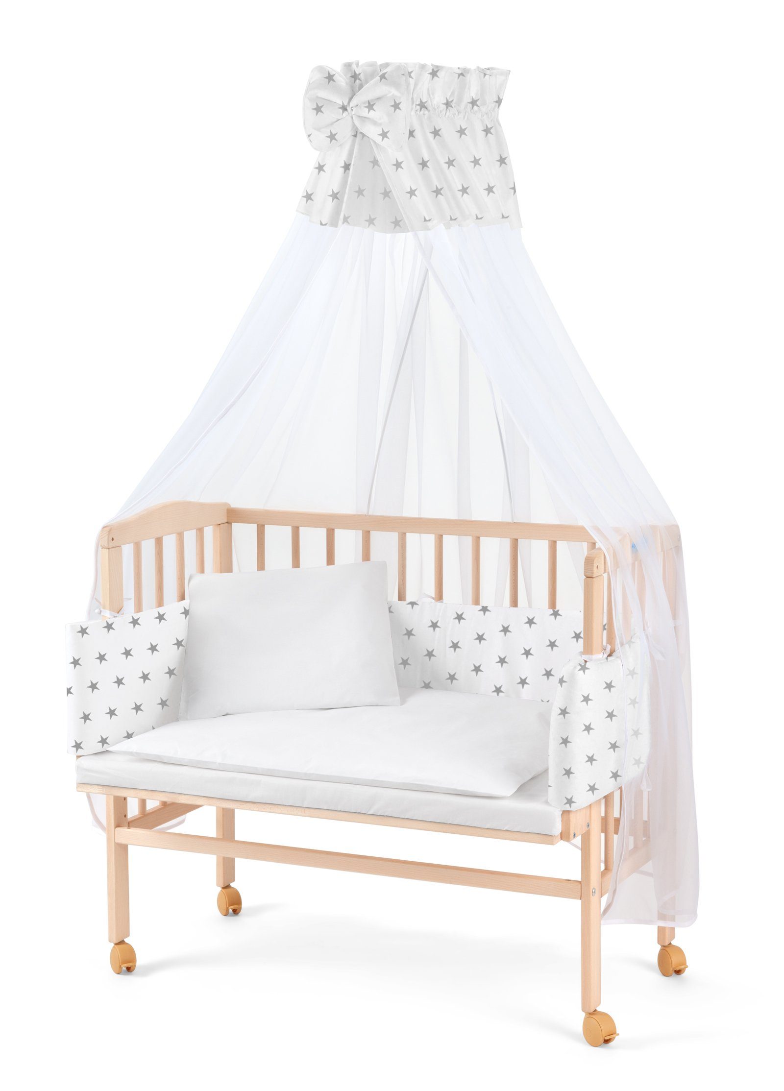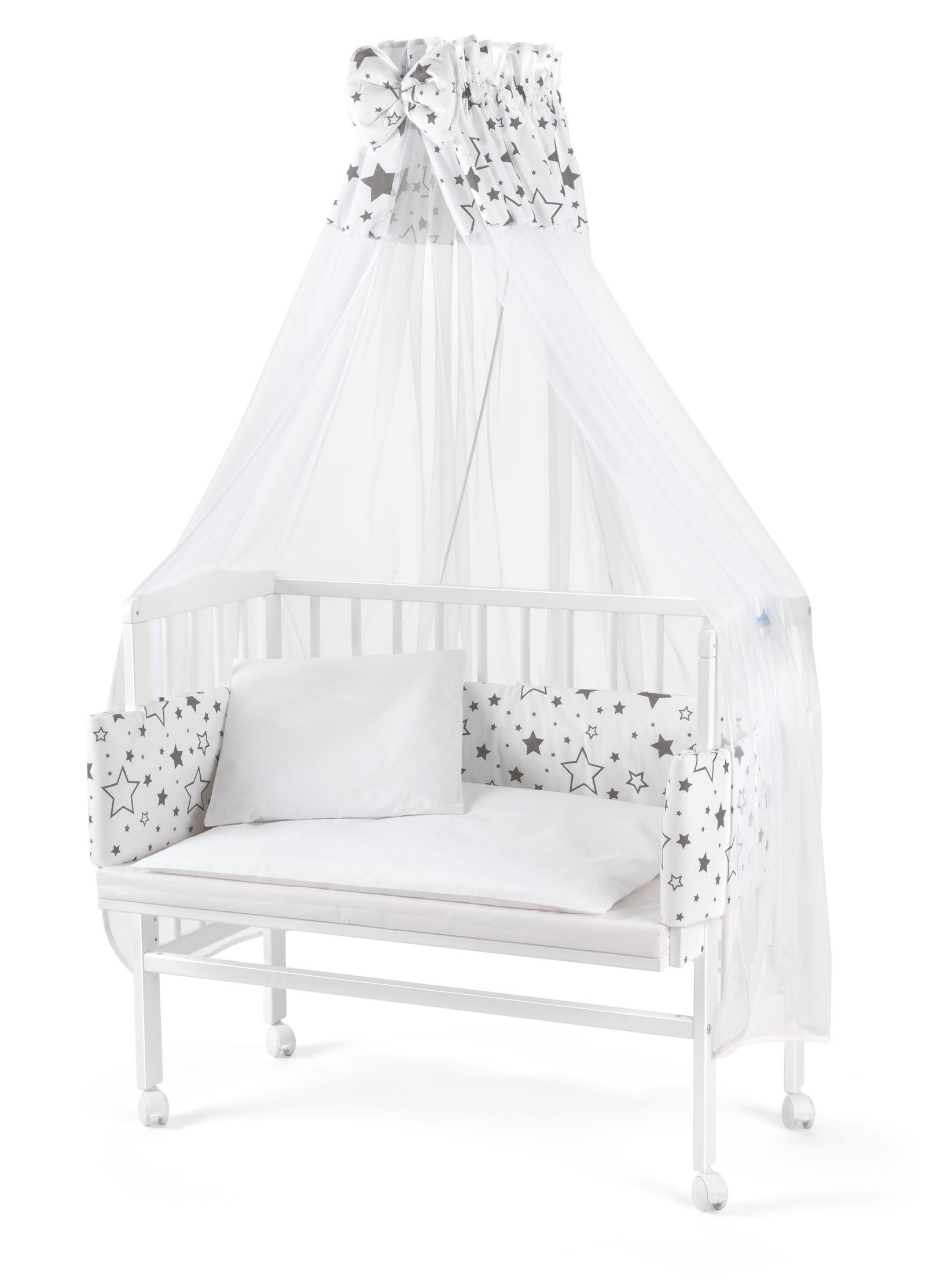 Lieferumfang | 1 x Beistellbett, Matratze, Himmel, Umrandung, Decke, Kissen, Bezüge, Stange |