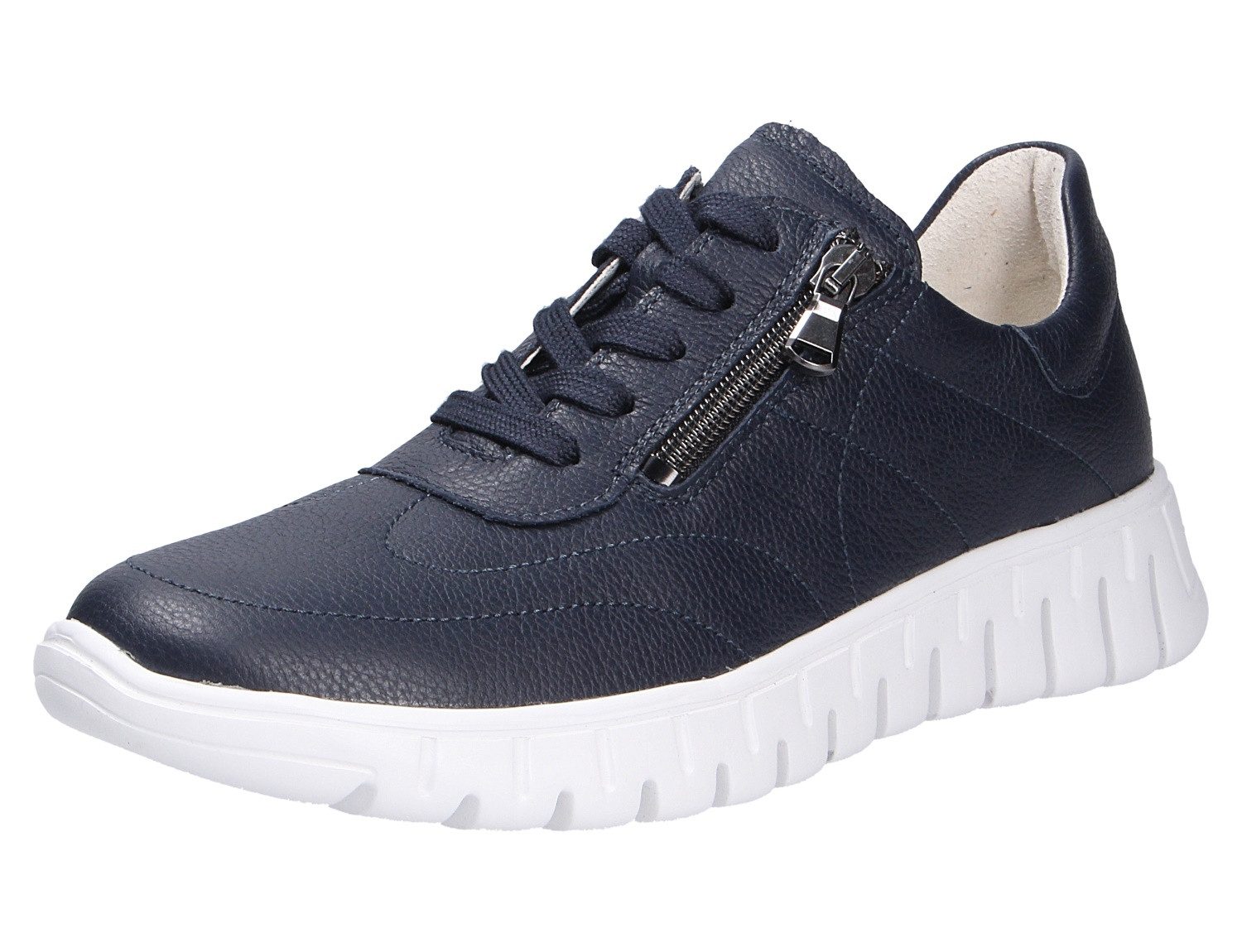 Schlichter Comfort und weiches Gehen sind beim Artikel VEGA der Marke Waldläufer wichtige Merkmale die diese Modell auszeichnen. Angenehm weich liegt das hochwertige Glattleder am Fuß und verleiht dem Schuh einen besonderen Look. Ebenso glänzt das Modell durch eine weiche Lederausstattung. Die mit einem weichen Polster unterlegte lederbezogene Einlegesohle sorgt für ein angenehmes Fußklima, ist auswechselbar und somit für lose Einlagen geeignet. Auf diesen Schuh freuen sich besonders etwas breitere Füße:Die Weite H bietet hier ausreichend Platz. Der Keilabsatz hat eine Höhe von cirka 1 cm ,die aus einem weichen PU-Material bestehende Laufsohle schont die Gelenke und federt jeden Tritt optimal ab. Über den Schnürverschluß ist eine optimale Anpassung an den Fuß möglich. Durch die runde Schuhspitze wirkt der Schuh dezent am Fuß und bietet genügend Platz für die Fußzehen. Die Размер обуви fällt regulär aus.