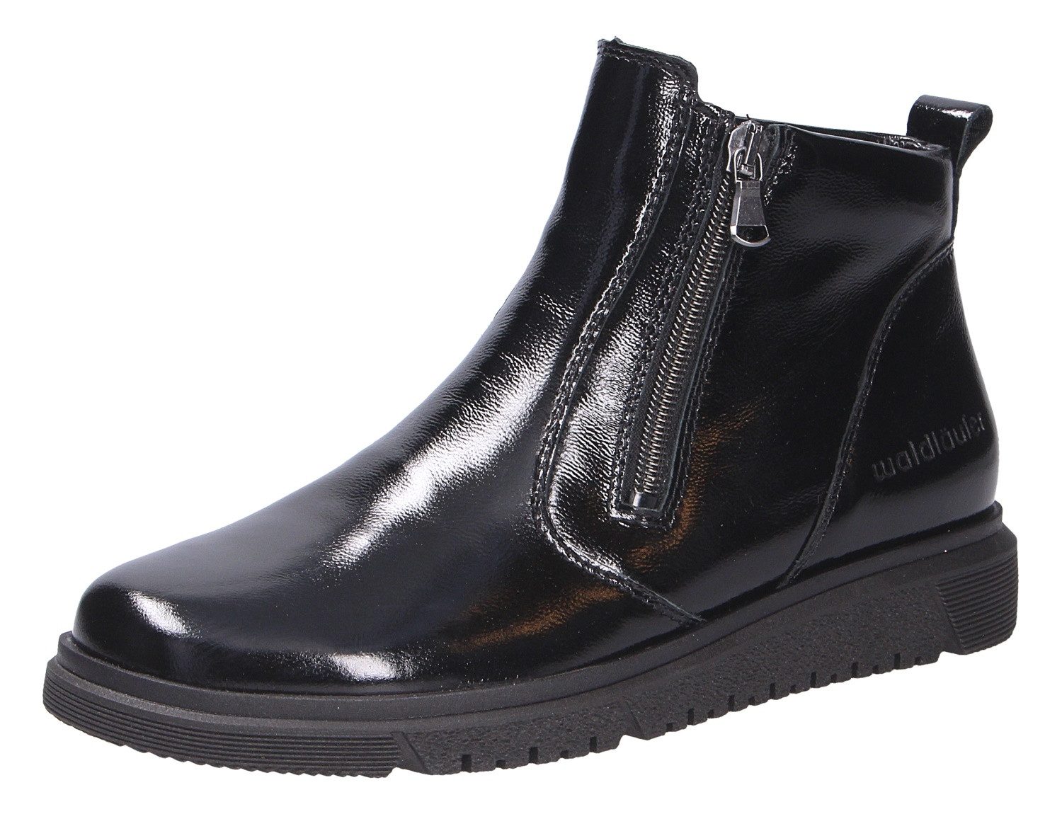 Modisch aktuell und top im Trend: Bei der Stiefelette H-GESA aus dem Hause Waldläufer passt einfach alles. Einen schönen Glanz hinterlässt das hochwertige Lackleder. Auch die textile Innenverarbeitung überzeugt durch ihre angenehm weiche Beschaffenheit. Durch die auswechselbare Decksohle ist es möglich, eigene Einlagen zu verwenden. Der Schnitt ist für breitere Füße (Weite H) geeignet. Der Keilabsatz hat eine Höhe von cirka 1 cm ,für gute Bodenhaftung sorgt die abriebfeste und griffige Gummisohle. Ein leichter Einstieg wird durch den innen liegenden Reißverschluss ermöglicht. Aufgrund der weiten Schaftweite ist dieser Stiefel ideal für sehr volle Waden geeignet. Durch die runde Schuhspitze wirkt der Schuh dezent am Fuß und bietet genügend Platz für die Fußzehen. Die Размер обуви fällt regulär aus.