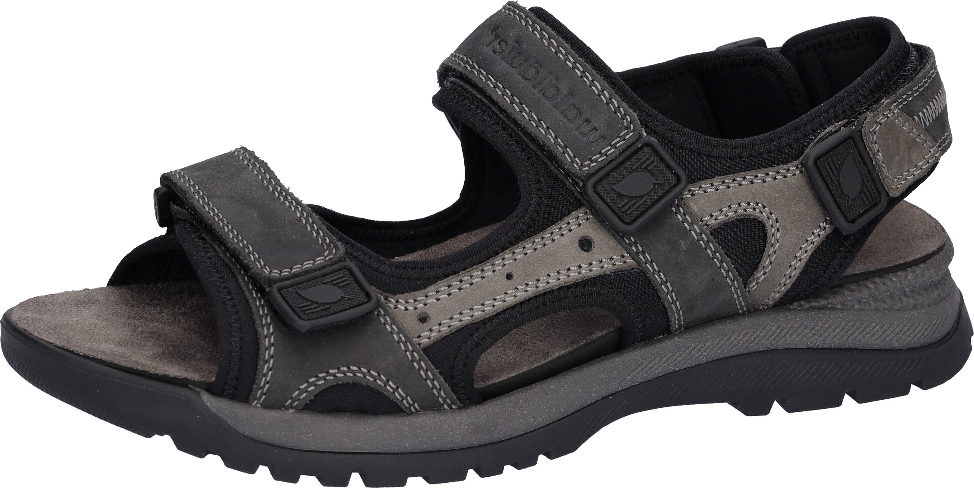 Mit dem Obermaterial aus Nubukleder, Textil und Neopren sind die Schuhe luft- und wasserdicht sowie wärmeisolierend. Dank der stark profilierten Sohle aus Synthetik bieten dir die Sandalen mehr Rutschfestigkeit auf unebenem Untergrund. Die gepolsterte Textil-Innensohle passt sich deinem Fuß an und bietet dir ein angenehmes Tragegefühl, selbst bei längerem Gehen oder Stehen. Mit einer offenen Schuhspitze setzt du auf Leichtigkeit und Flexibilität. Diese Sandalen in Weite H sind ideal für Füße mit mehr Volumen.