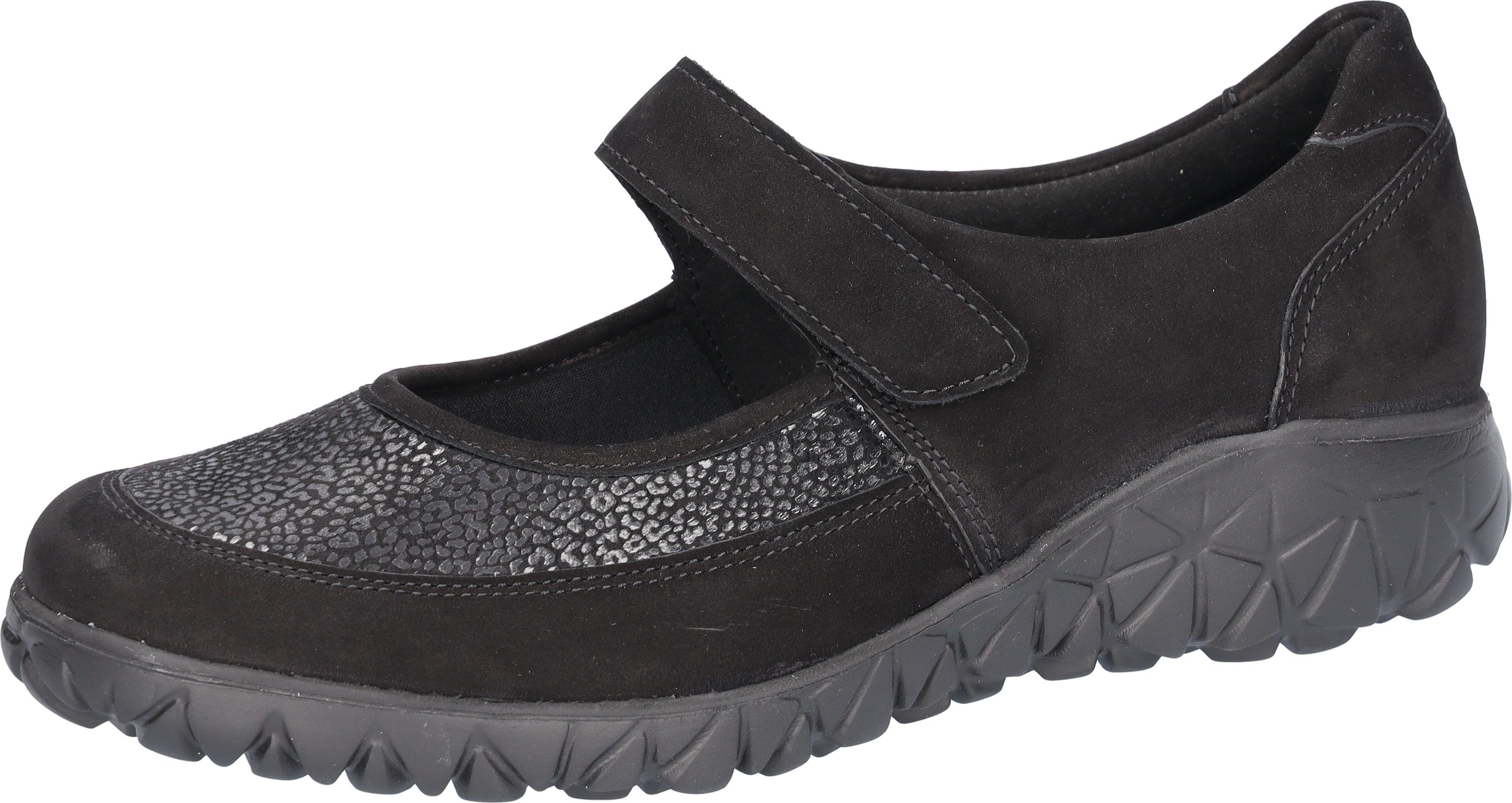 Mit dem Nubukleder und dem Textil wurde ein elastisches Obermaterial verwendet. Die Synthetik-Sohle der Riemchenballerinas ist leicht profiliert und sorgt für mehr Rutschfestigkeit auf unebenem Untergrund. Die herausnehmbare Innensohle aus Textil bietet zusätzliche Flexibilität und ermöglicht die Verwendung individueller Einlagen oder orthopädischer Sohlen. Dank dem Keilabsatz wird eine angenehme Höhe erreicht, die sowohl Komfort als auch Stil bietet. Diese Riemchenballerinas in Weite H sind ideal für Füße mit mehr Volumen.