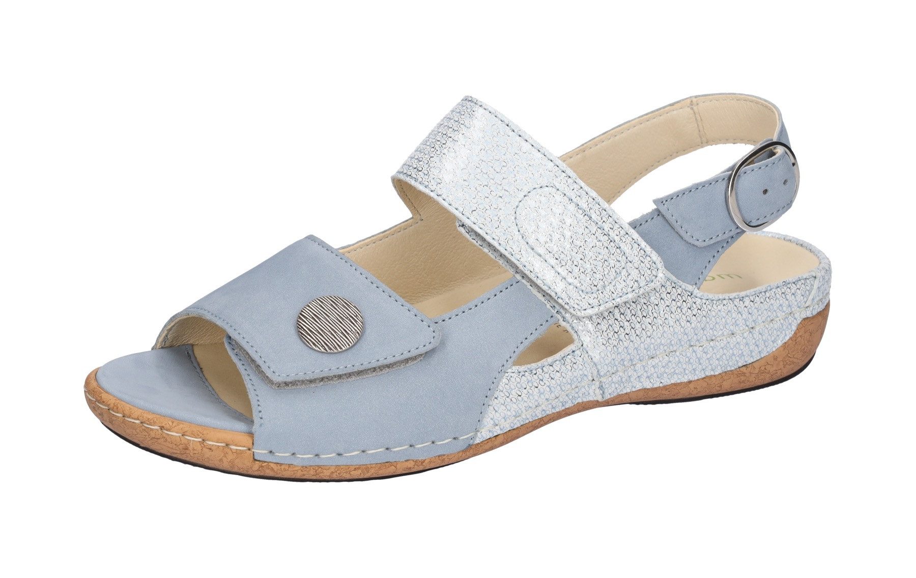 Die Sandalen von Waldläufer eignen sich gut zum Spaziergang an der Strandpromenade. Damit kannst du stilvoll und bequem die warmen Sommerabende genießen. Durch die verstellbaren Klettverschlüsse lässt sich der Schuh schnell an- und ausziehen sowie in der Weite individuell anpassen. Dank der leicht profilierten Sohle aus Synthetik sorgen die Sandalen für mehr Rutschfestigkeit auf unebenem Untergrund. Dank dem Keilabsatz wird eine stabile und dennoch elegante Haltung gewährleistet.