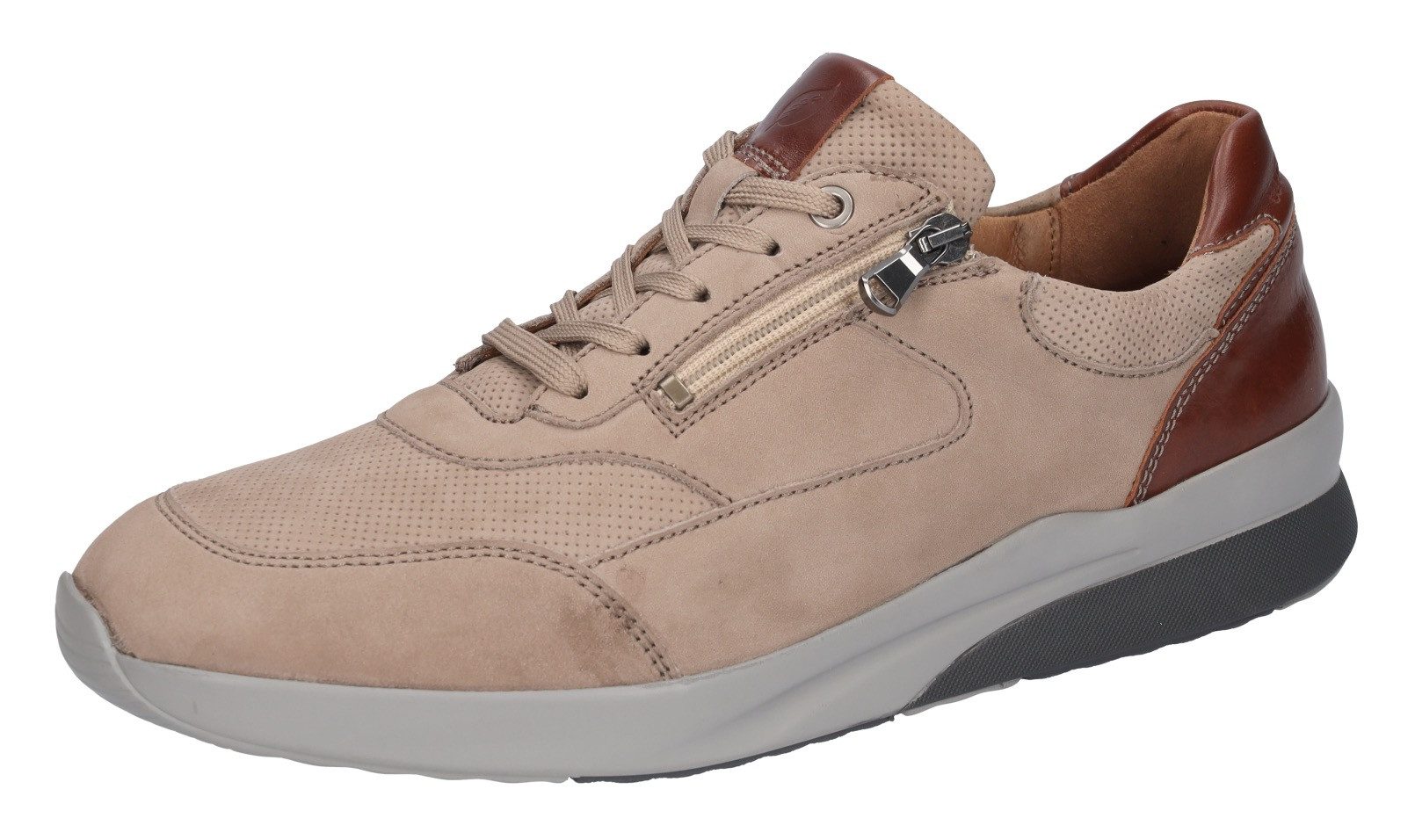 Das Obermaterial aus Nappaleder und Nubukleder ist geschmeidig und weich. Die profilierte Synthetik-Sohle der Sneaker trägt nicht nur zum lässigen Street-Style bei, sondern sorgt auch für mehr Rutschfestigkeit. Die gepolsterte Leder-Innensohle passt sich deinem Fuß an und bietet dir ein angenehmes Tragegefühl, selbst bei längerem Gehen oder Stehen. Mit einer runden Schuhspitze kannst du dich auf Bequemlichkeit und eine stilvolle, traditionelle Ästhetik verlassen. Diese Sneaker in Weite H sind für kräftigere, volle Füße geeignet.