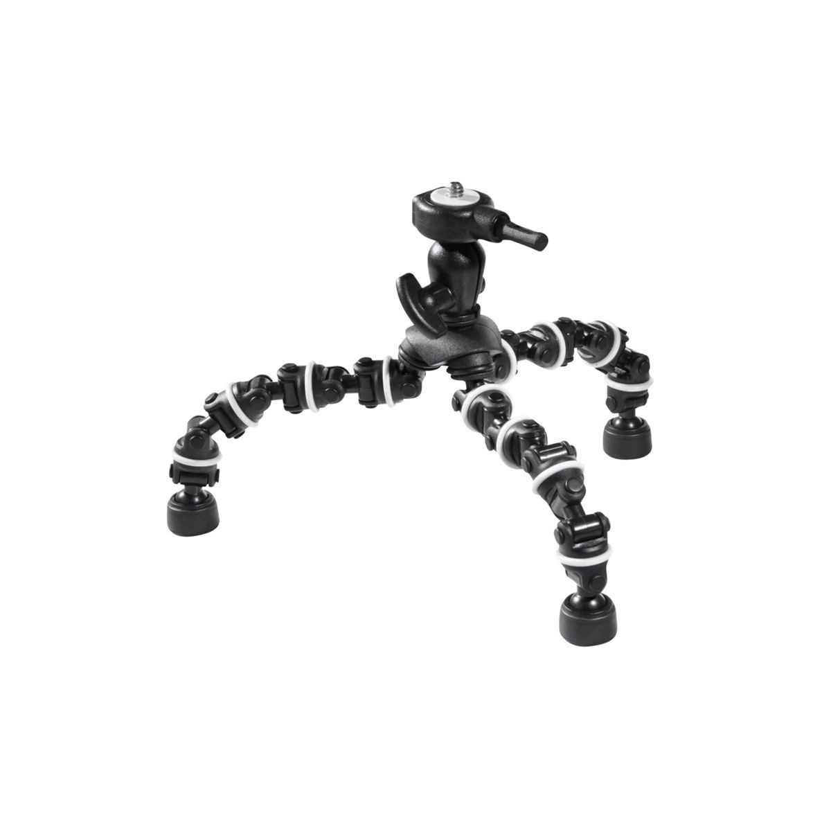 Das Mutiflex-Stativ ist nämlich sehr viel mehr als ein Stativ im Mini-Format. Mit seinen sieben Gelenken pro Bein ist es höchstgradig flexibel und biegbar, und kann sich somit jedem Ast, Zaun, Treppengeländer und jeder Situation anpassen. Selbst als ganz profanes Tischstativ sorgt es mit seinen gummierten Füßen für Griffigkeit und Standfestigkeit. Die Schnellwechselplatte mit 1/4 Zoll Anschluss bietet zudem die gewohnte Anschlussmöglichkeit für Ihre Kompaktkamera. Die geringen Transportmaße des kleinen Klammeraffen haben darüber hinaus den Vorteil, dass es selbst in jede noch so kleine Tasche passt.