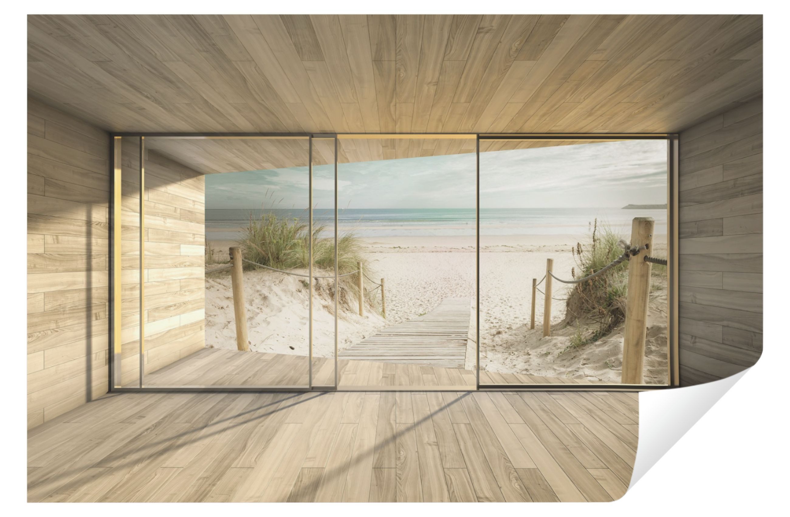Art Muster | 3D EFFEKT 3D Strand Meer Sand Terrasse Panorama Natur Landschaft Fenster Ausblick |
