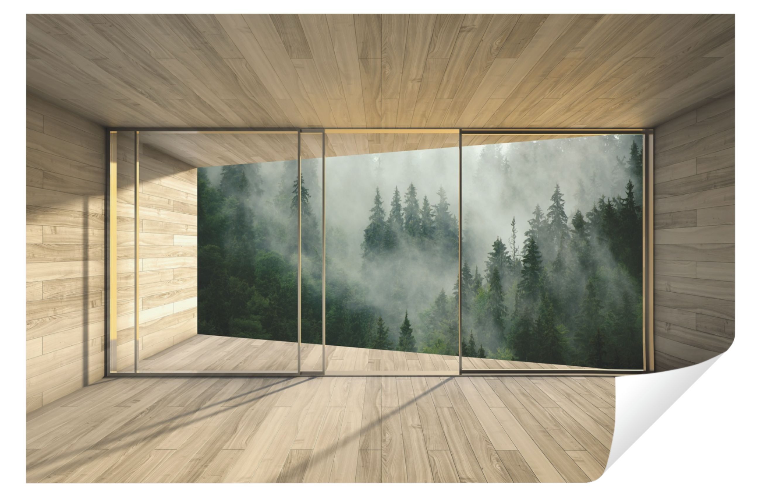 Art Muster | 3D EFFEKT 3D Wald Terrasse Berge Panorama Natur Landschaft Fenster Ausblick |