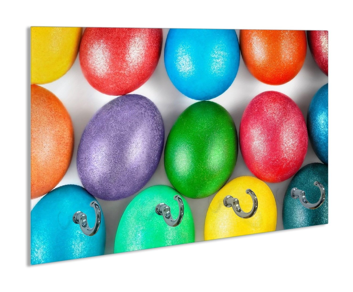 Kräftige Farben zieren diese auf weißem Grund arrangierten Ostereier als Einstimmung auf das Osterfest. Da kann der Osterhase kommen und den Frühling versüßen!