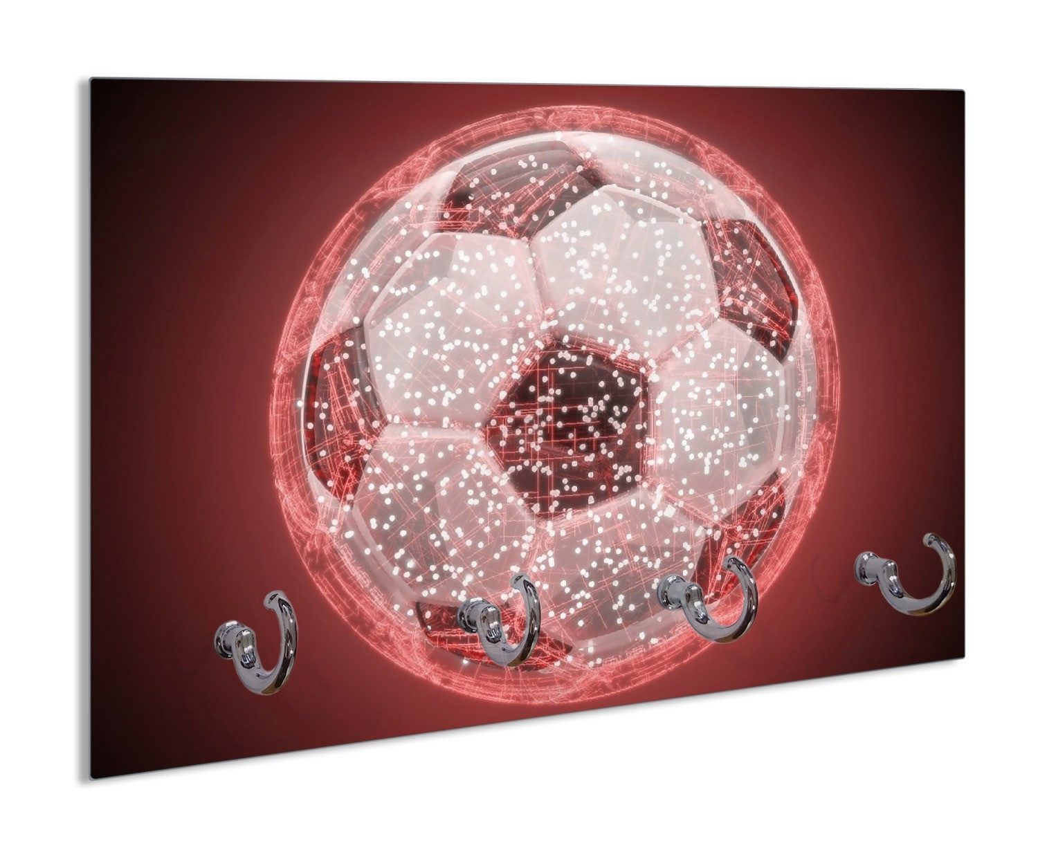 Ein rotes Netzwerk ist um diesen Ball gespannt. Viele Punkte und Linien ziehen sich um diesen Fußball und verstecken ihn in einer digitalen Welt.