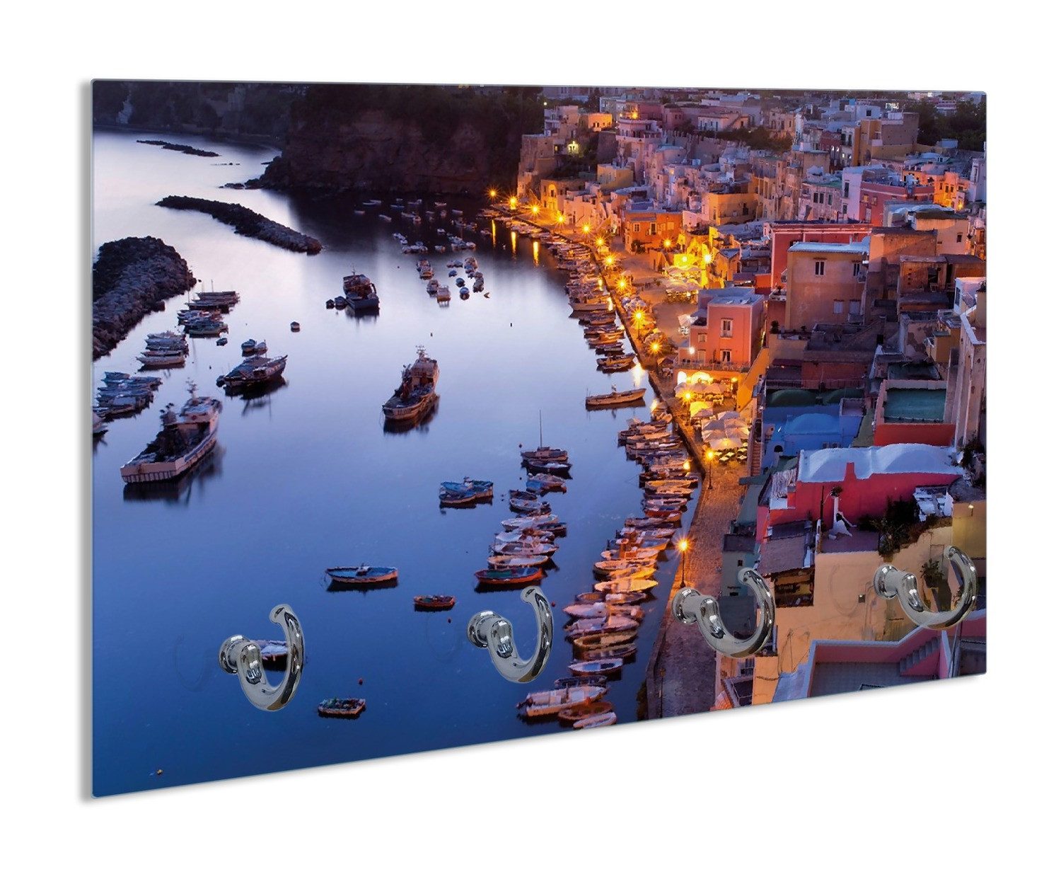 Wallario Handtuchhalter Hafen bei Nacht - Italien hell erleuchtet, aus Glas mit 4 Metallhaken